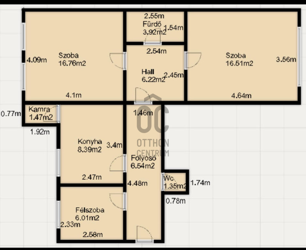 A lakásban faparketta található, elrendezése praktikus, a terek jól kihasználhatók.