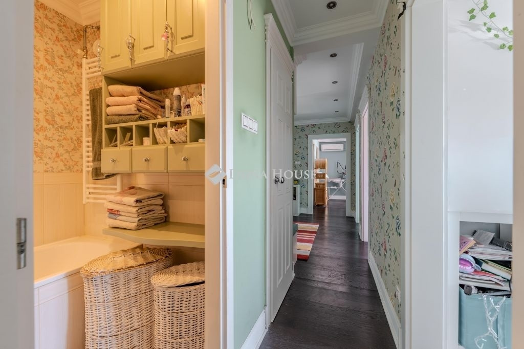 Felújítás és felszereltség: A lakás 9 éve teljeskörű felújításon esett át, amely magában foglalta a villamos- és vízhálózat teljes cseréjét is. Egyedi, minőségi asztalosmunkák eredményeként beépített szekrények és tárolók biztosítják a praktikus helykihasználást. A konyha néhány éve készült el, szintén egyedileg gyártott bútorokkal.