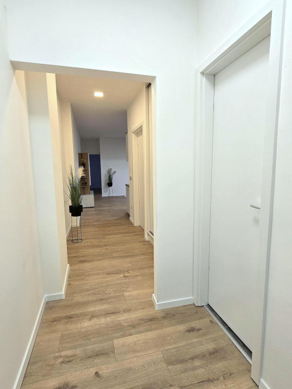 A lakás elrendezése jól átgondolt: világos nappali és három külön nyíló szoba biztosítja, hogy minden családtagnak vagy funkciónak meglegyen a saját tere. Az egységes burkolatok, az új beltéri ajtók és az átalakítások mind azt szolgálják, hogy a lakás élhető, arányos és kényelmes legyen.