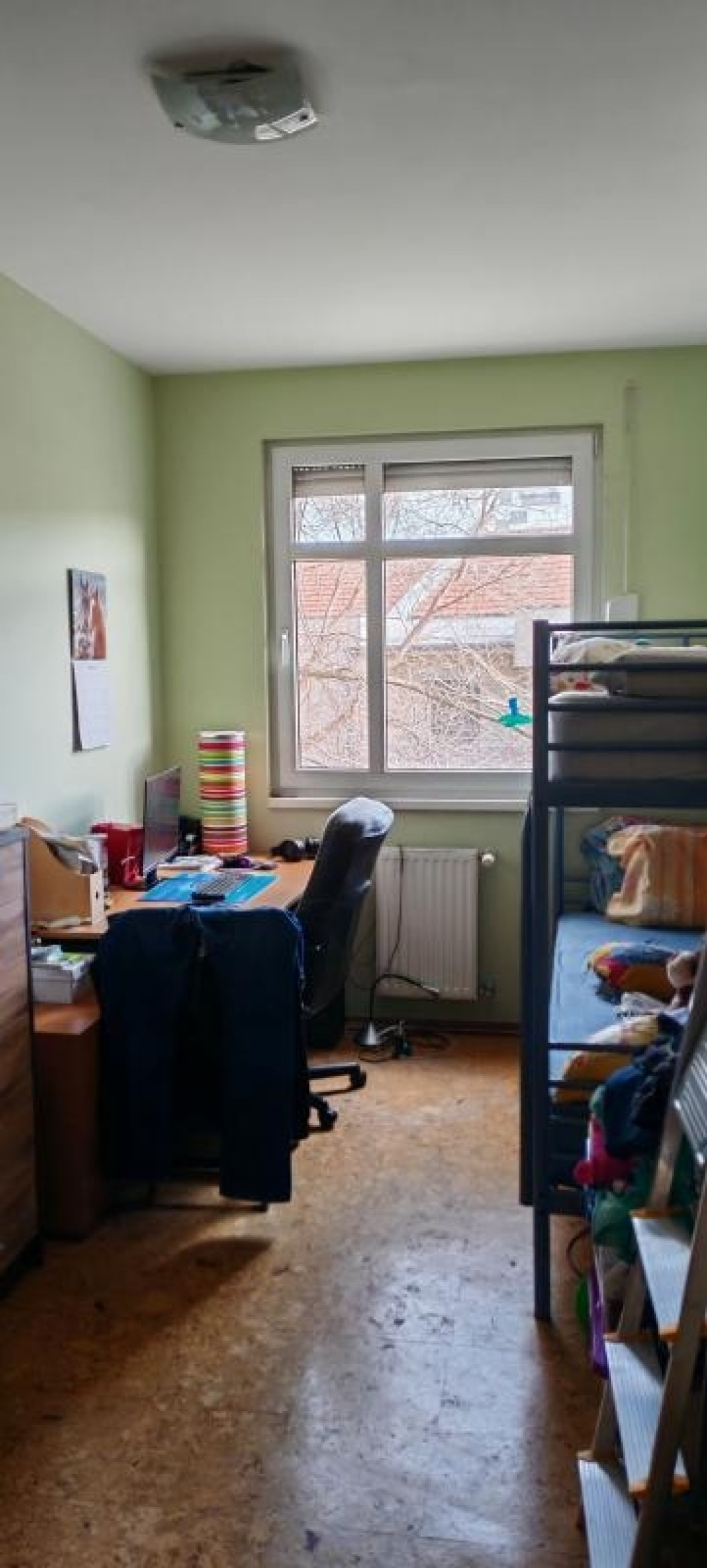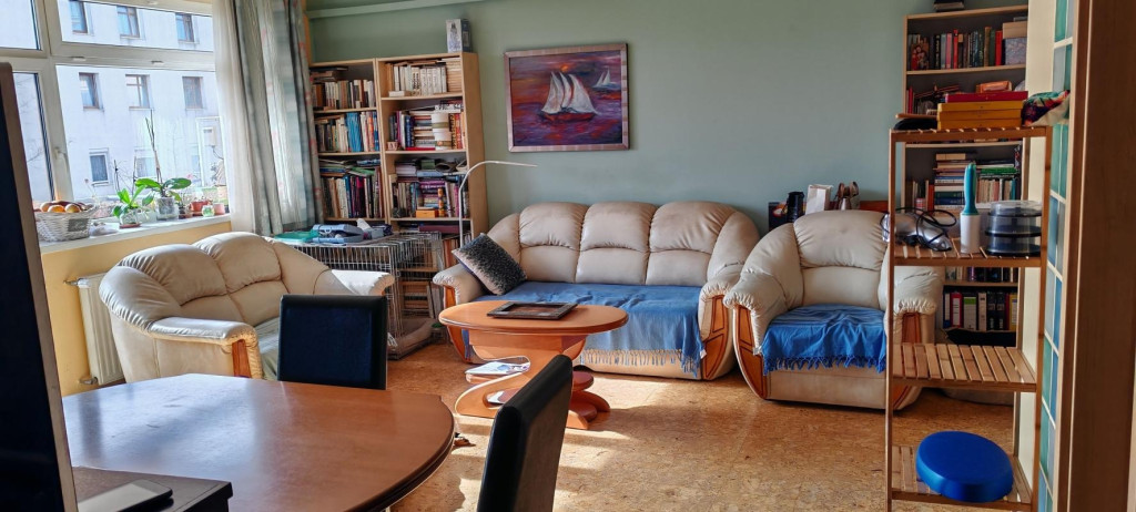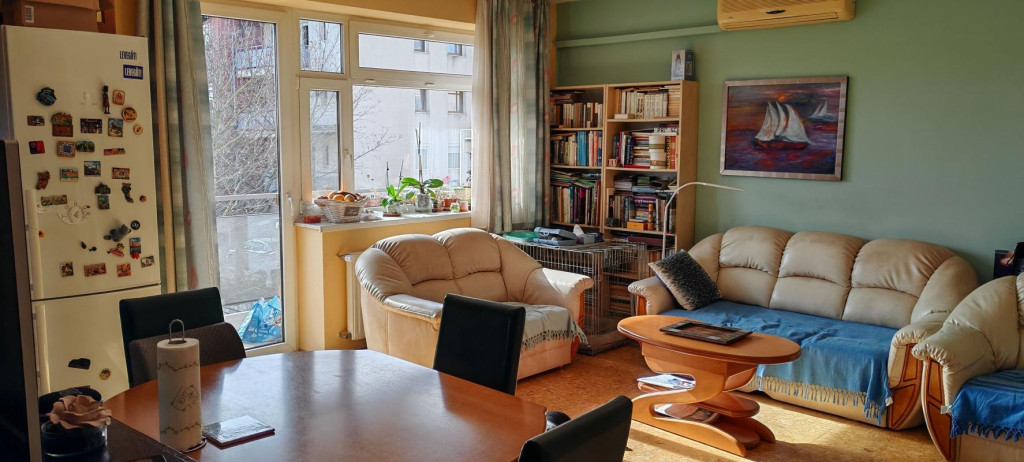 A lakás az első emeleten van, de a nappali ennek ellenére rendkívül világos, napfényben fürdőzik, köszönhetően annak, hogy nincsenek olyan építmények, melyek leárnyékolnák.