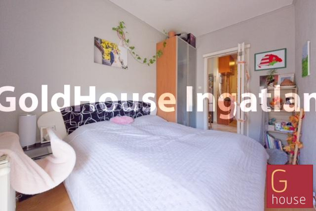 A 60 négyzetméteres alapterület praktikus elrendezést kínál: egy tágas nappali, egy hálószoba, egy kisebb dolgozó- vagy gyerekszoba, amely jelenleg gardróbként funkcionál. A beépített bútorok a vételár részét képezik, így a lakás költséghatékonyan alakítható saját igényekre.