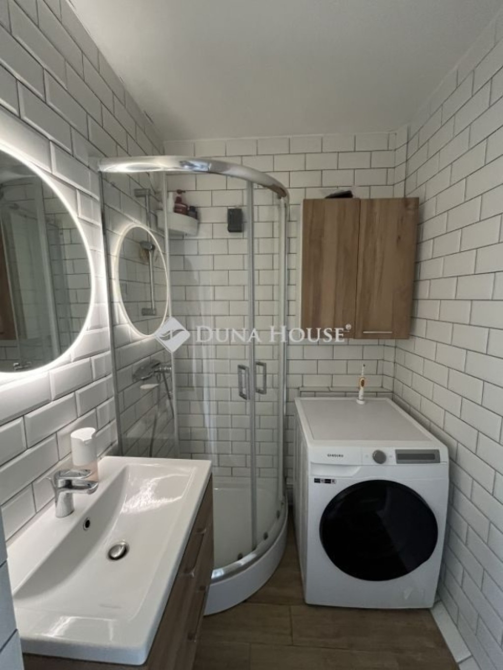 Frissen felújított fürdő és WC, új műanyag nyílászárók, redőnyökkel felszerelve. Légkondicionáló a nappaliban, beépített szekrények a folyosón. Panelprogramban részt vett, a lift felújított.