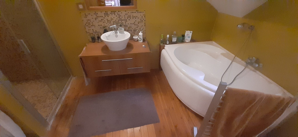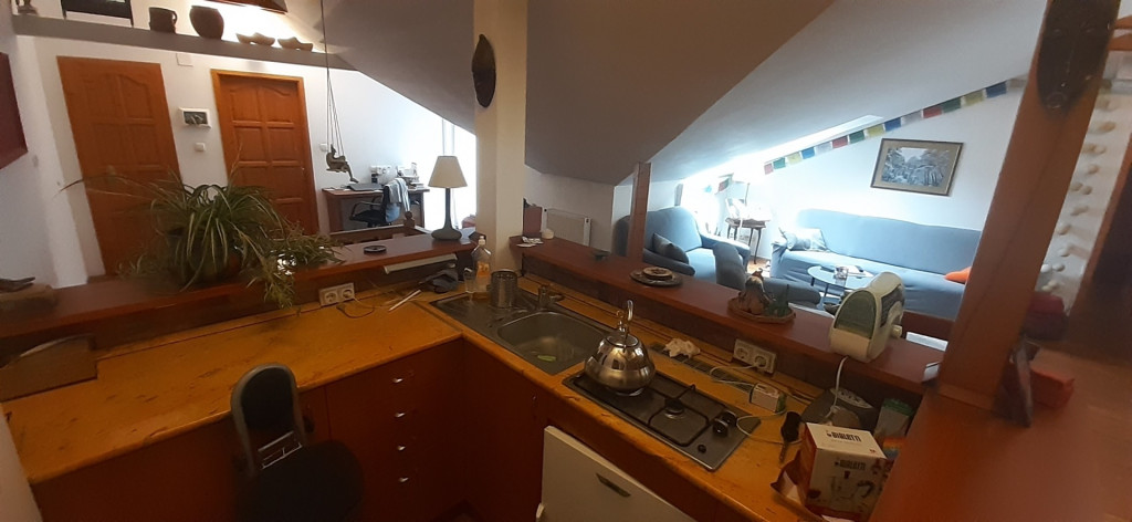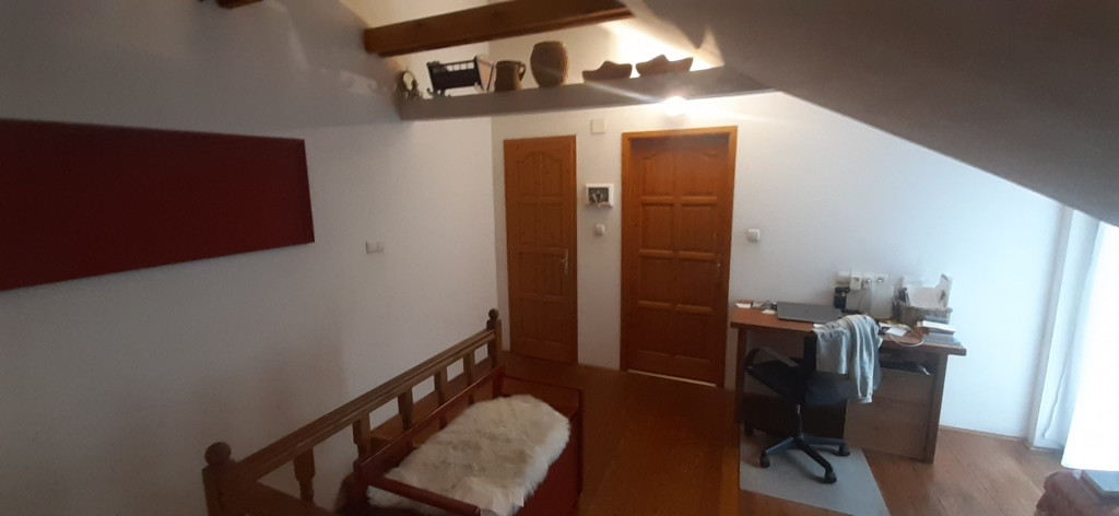 A tetőtérben még egy fürdő, külön WC, erkélyes nappali konyhával, és 3 külön nyíló háló lett kialakítva.
