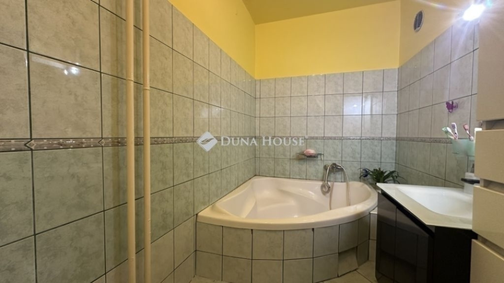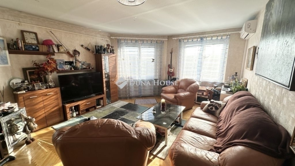 A helyiségek: 4 szoba, két fürdőszoba, külön WC, konyha+étkező, előtér, közlekedő és belső lépcső. A szobák burkolata kerámia és laminált padló. A lakás hűtését 3 db klíma biztosítja.