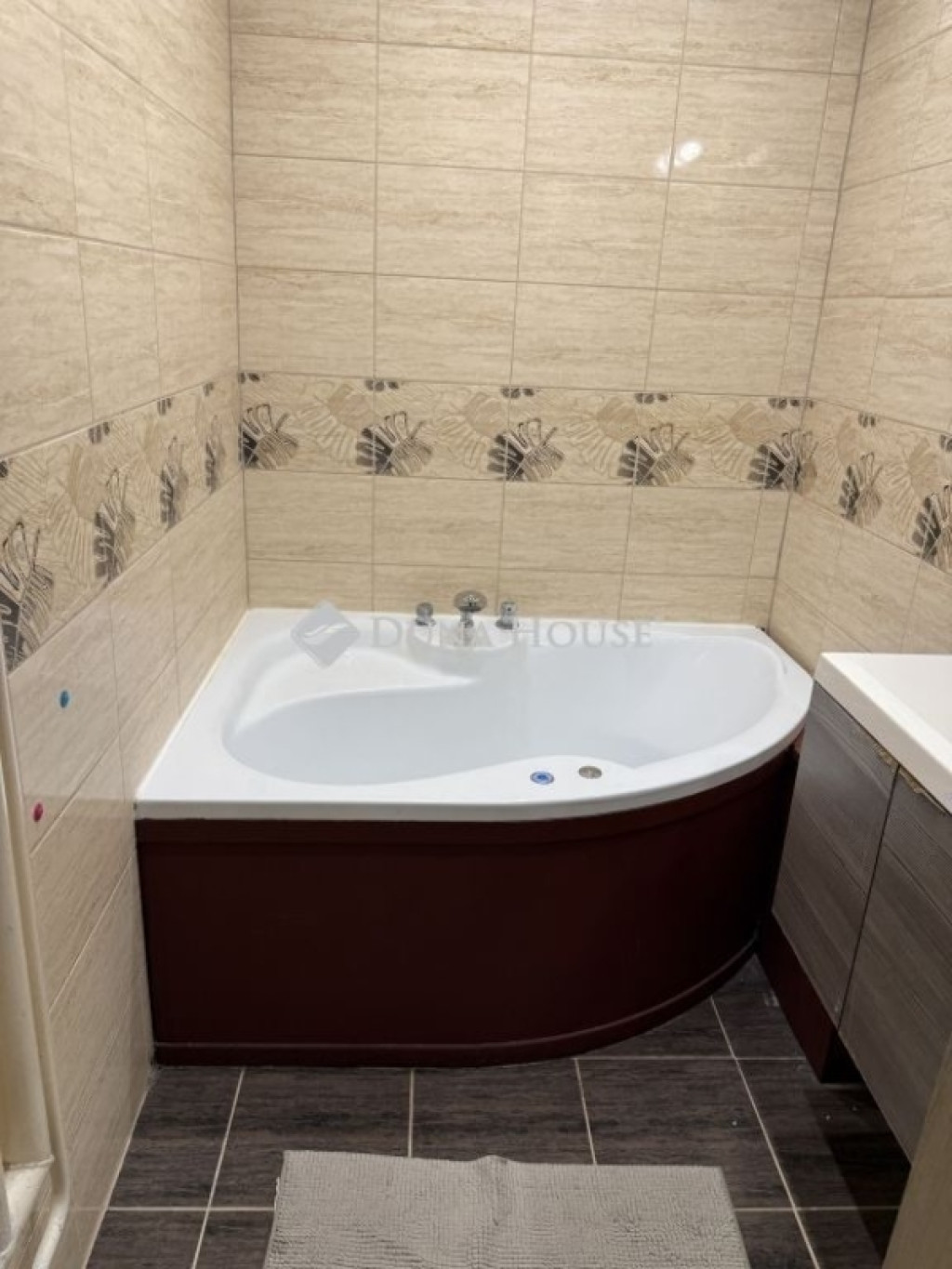 A modern konyhabútor gépesített, elszívóval, mosogatógéppel, mikrohullámú sütővel és sütővel ellátott.