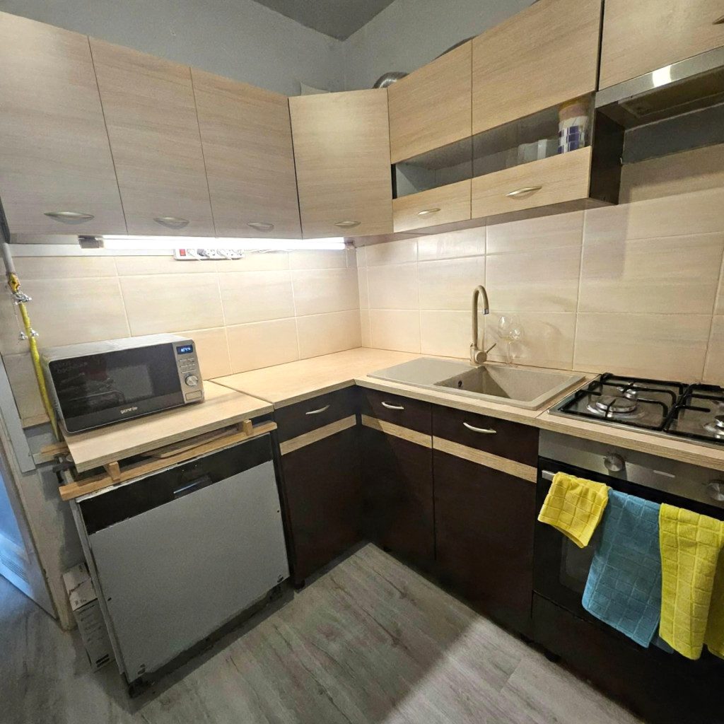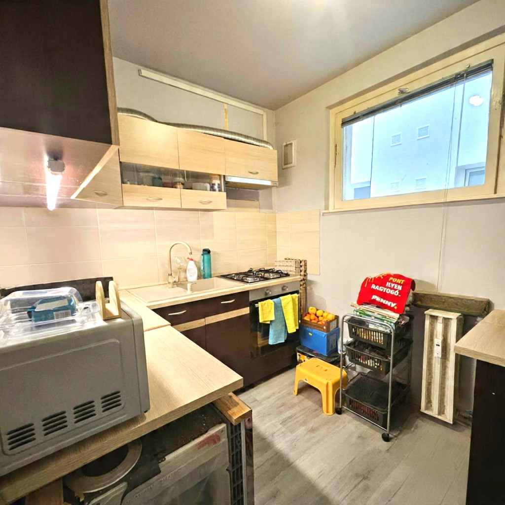 - ablakos konyha, 3 éve beépített gépesített konyhabútorral