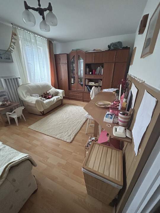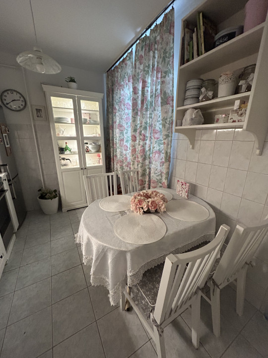 A lakás a 3. Emeleten található, tágas, világos, kényelmes elosztása van. Minden helység külön nyílik egy közlekedőről. Kettő nagy szoba van és egy fél szoba, ami tökéletes lehet dolgozónak vagy gyerekszobának, esetleg kis hálónak vagy akár gardróbnak is. Itt a francia ablak alatt hatalmas hársfa virágzik minden évben.