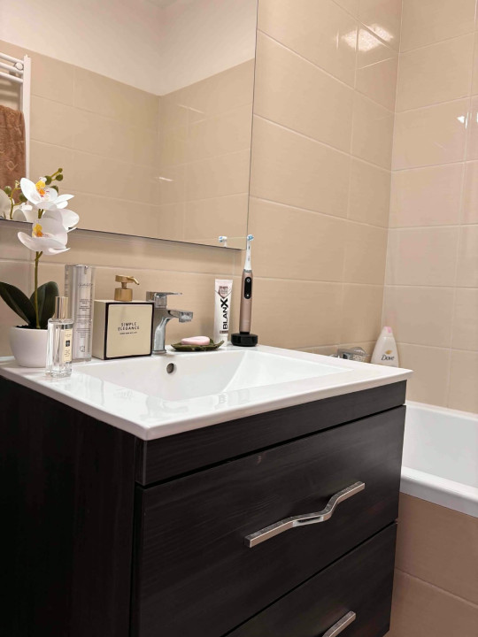 A lakás világos barátságos terekkel rendelkezik minden helysége jól ki használható A tágas konyha a lakás egyik kellemes része, beépített gépekkel felszerelve (mosogatógép,sütő mikro, páraelszívó)