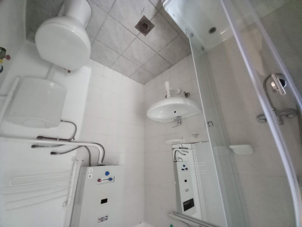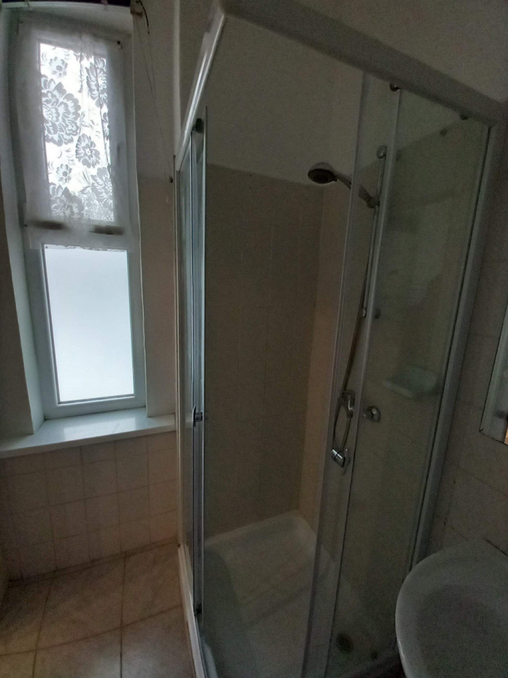 A fürdőszoba is ablakos, ahol a zuhanykabin cserére került.