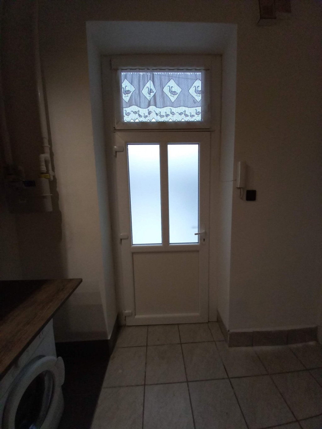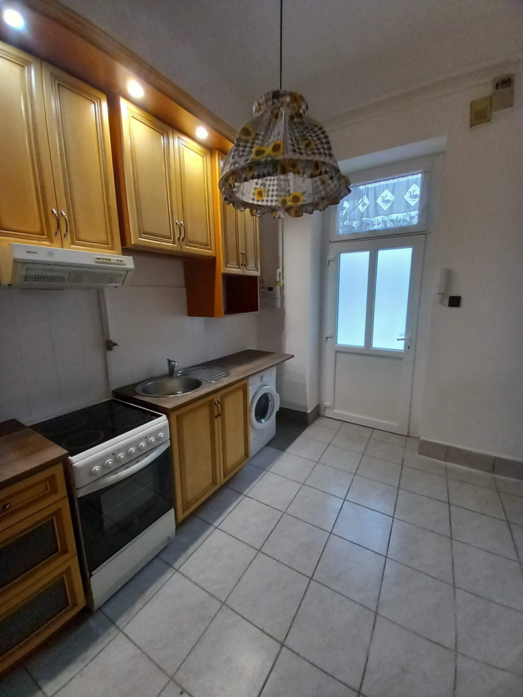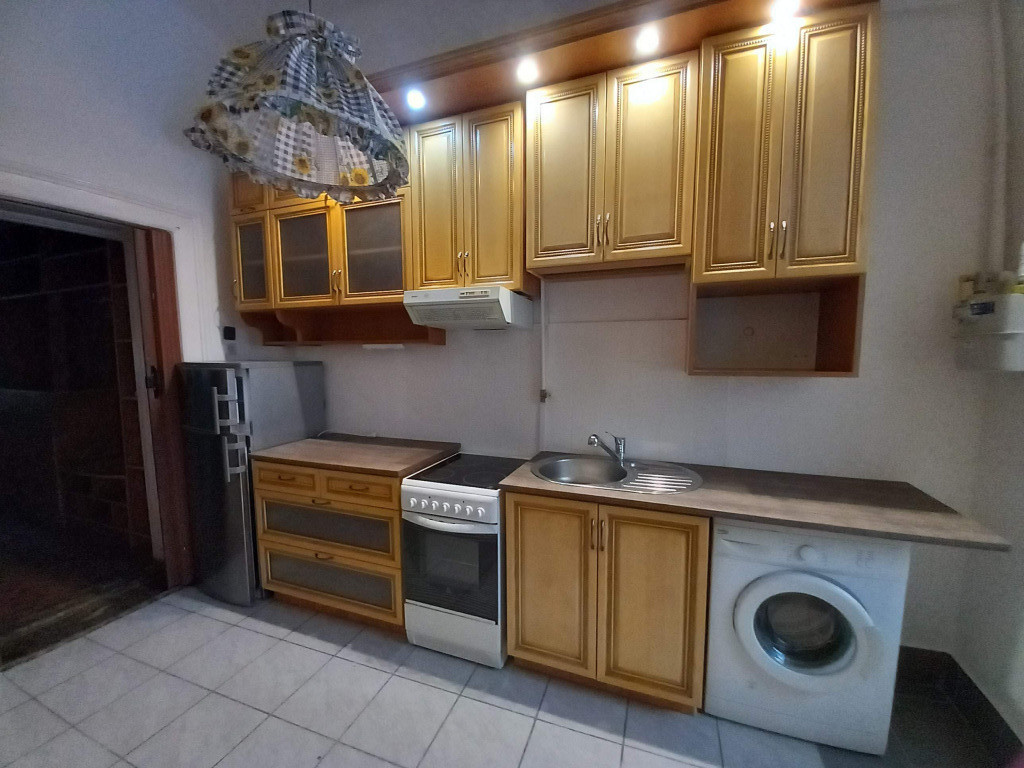 A konyha tágas, étkezőnek is helyet ad, elfér a mosógép is. A konyhabútor újonnan került beépítésre.