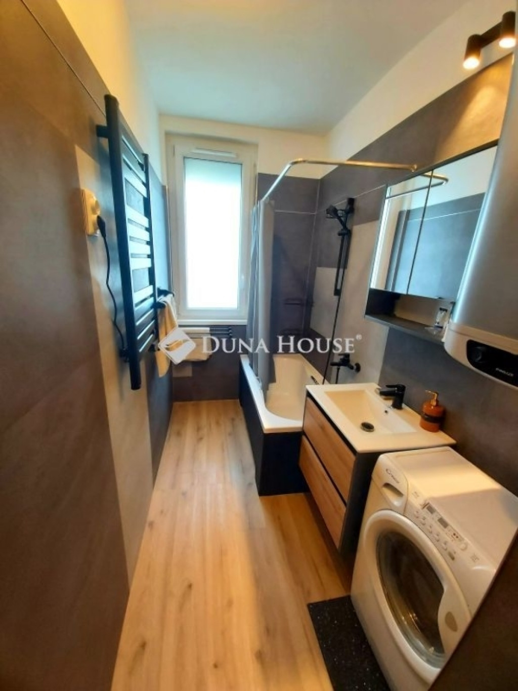 Felújított fürdőszoba új burkolatokkal, káddal, szaniterekkel, új 100 literes, ECO villanybojler. A WC és a fürdő külön helyiségben található.