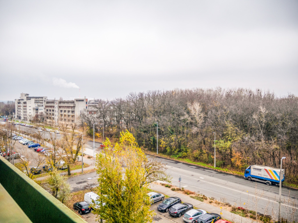 A hatodik emeleti ingatlan két külön nyíló szobával és két erkélykapcsolattal kínál kiváló elrendezést a mindennapokhoz.