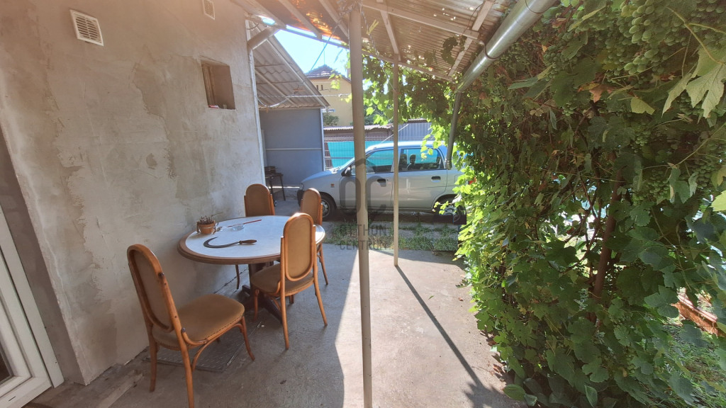 A lakás bejárata előtt van egy kis fedett terasz, a konyha előtt pedig egy nagy - szintén fedett - terasz. Körülötte néhány tőke szőlő teszi intimmé a teraszt és a házat.