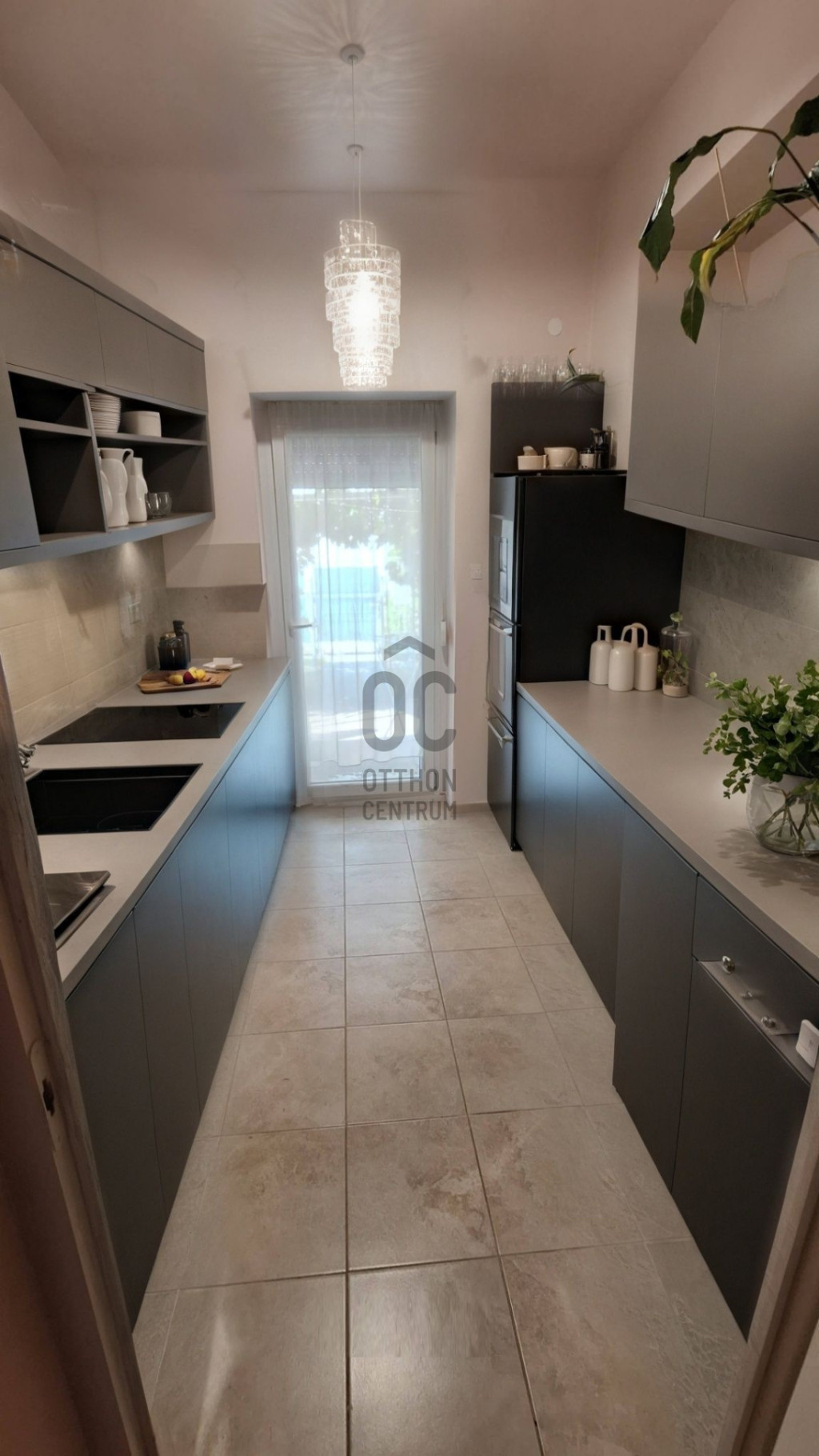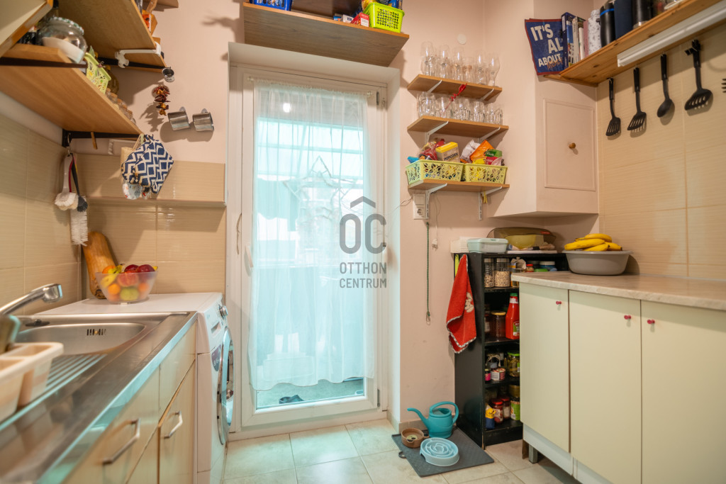 Jó méretű , kényelmes konyhája van,- közvetlen terasz-kapcsolattal. A képek között szerepel egy látványkép is, - akár ilyen konyhája is lehet!