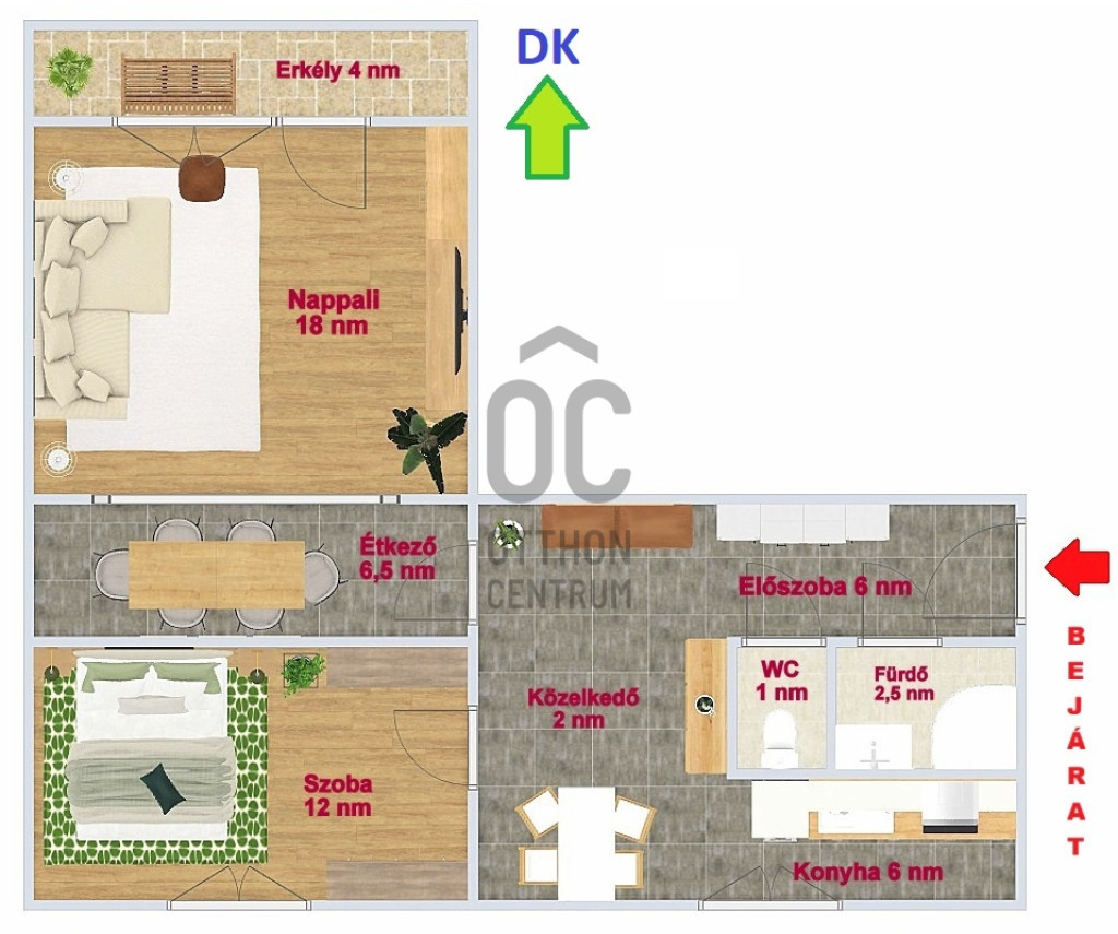 - a nappalit és az étkezőt, valamint a hálószobát is laminált parkettával, az ingatlan többi helyiségét járólappal, az erkélyét pedig kültéri (fagyálló) járólappal burkolták le,