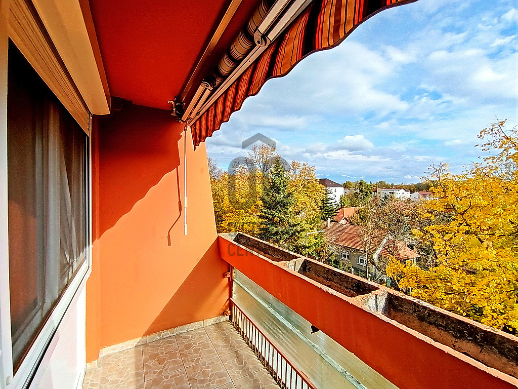 - az - alapból időjárás védett - erkélyén pluszban még egy manuálisan (kézzel) kitekerhető / működtethető, ponyvás napellenzőt szereltek fel,