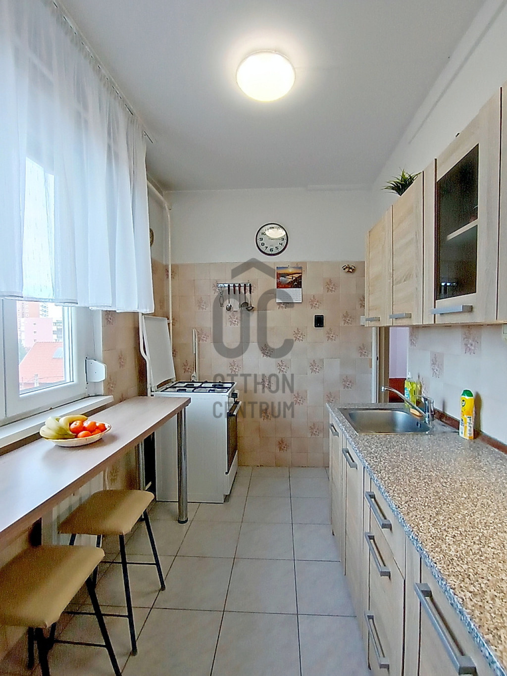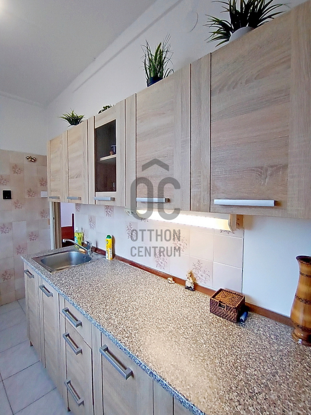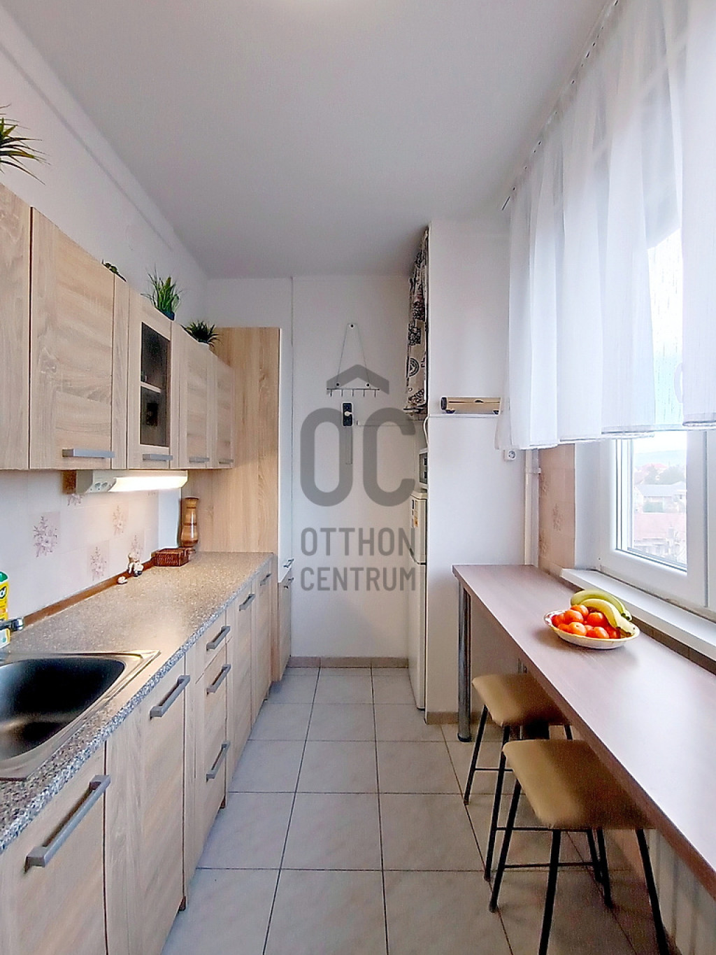 - a régi „házgyári” konyhabútort egy modernebbre (több konyhaelemből állóra / nagyobb munkafelülettel rendelkezőre) cserélték ki, az eredeti - nagyon pici - kamrahelyiséget pedig elbontották (kamraszekrényes konyhaelemmel pótolták), így ezzel a megoldással a konyha területét tovább növelték,