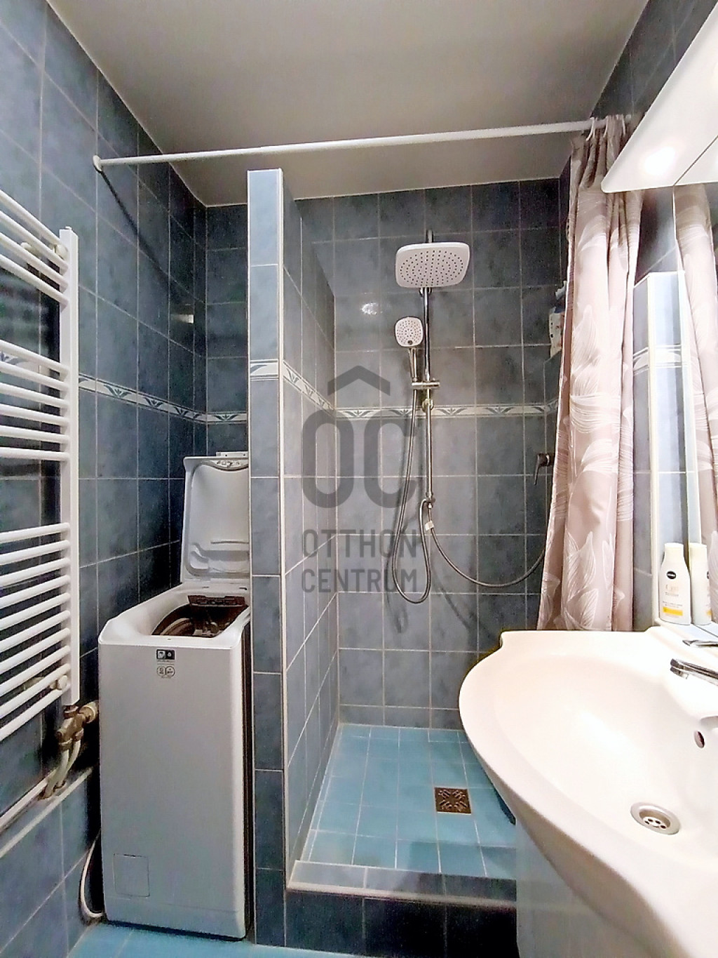 - az eredetileg kádas fürdőszobát teljes körűen felújították és zuhanyzósra építették át, valamint kényelmes helyet és direkt bekötést biztosítottak egy felültöltős automata mosógépnek is,