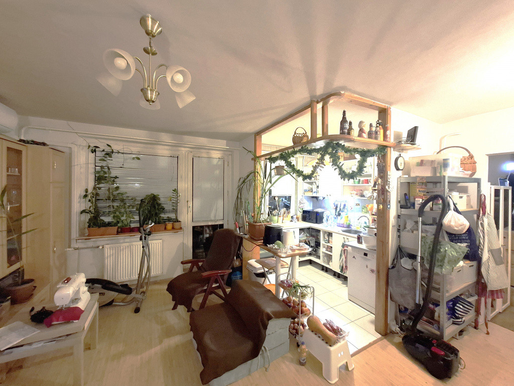 A nappali oldalon klíma is beszerelésre került és a főzőfülke egybe lett nyitva a nappalival, így még tágasabb, élhetőbb a térérzet.