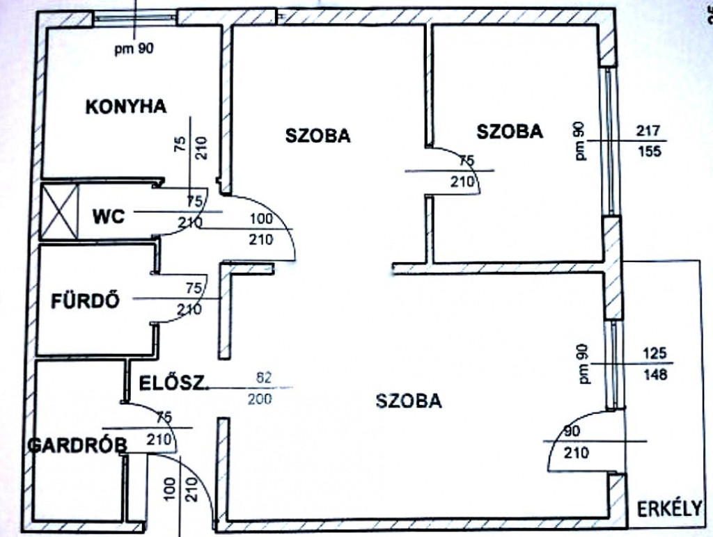 A lakás eredetileg 2 szobás volt, 2023-as felújítás során azonban a belső szobát gipszkartonnal kettéválasztották, ezzel kialakítva 1+2 félszoba elrendezést, külön gardróbszobával, tágas konyhával, fürdőszobával, külön wc-vel, erkéllyel.