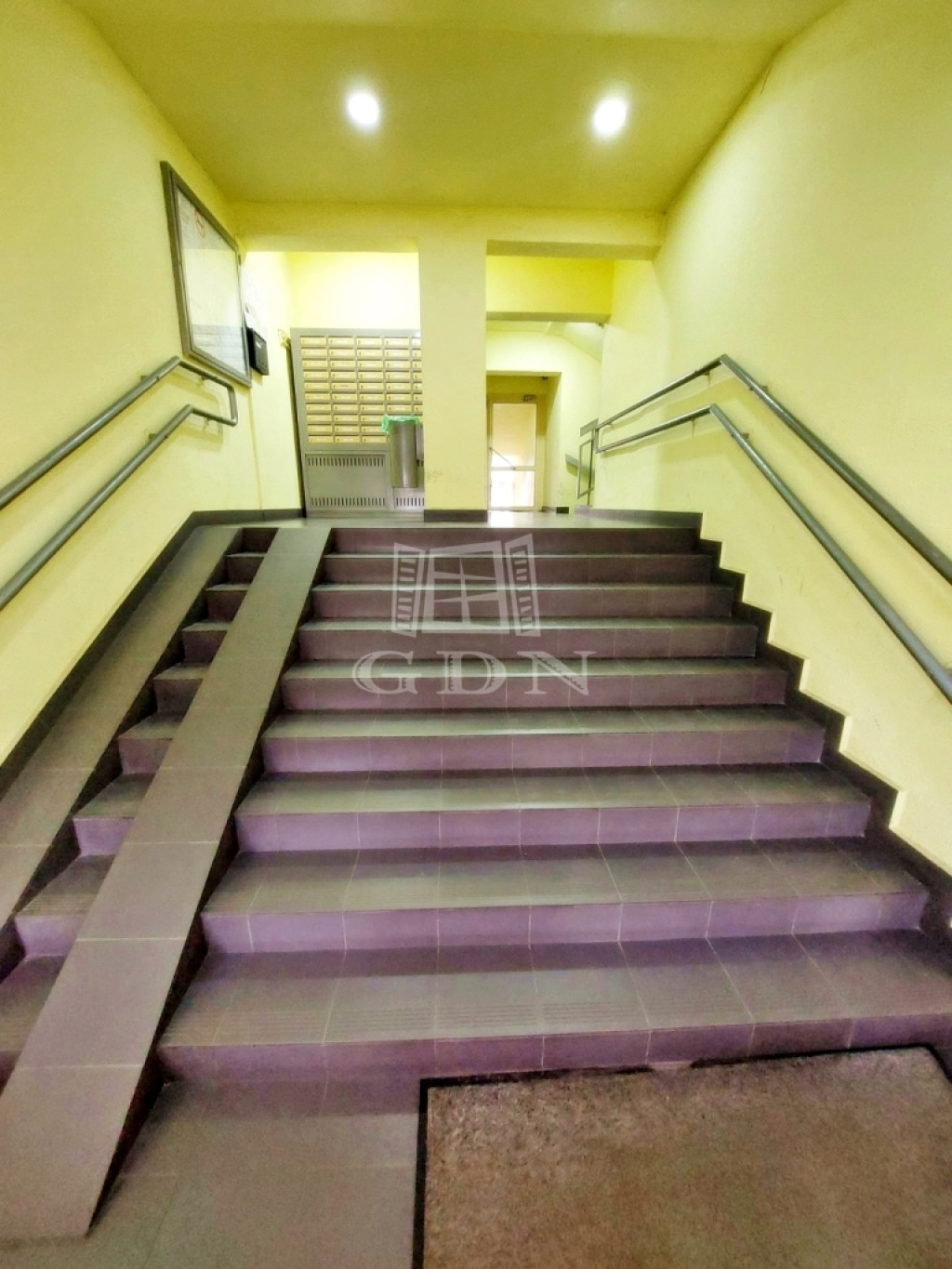 A társasház folyamatosan gondozott, lépcsőháza rendezett, a lift felújított.
