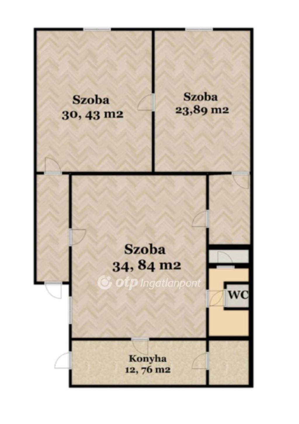 -Elrendezés: 3 szoba, külön fürdő és WC