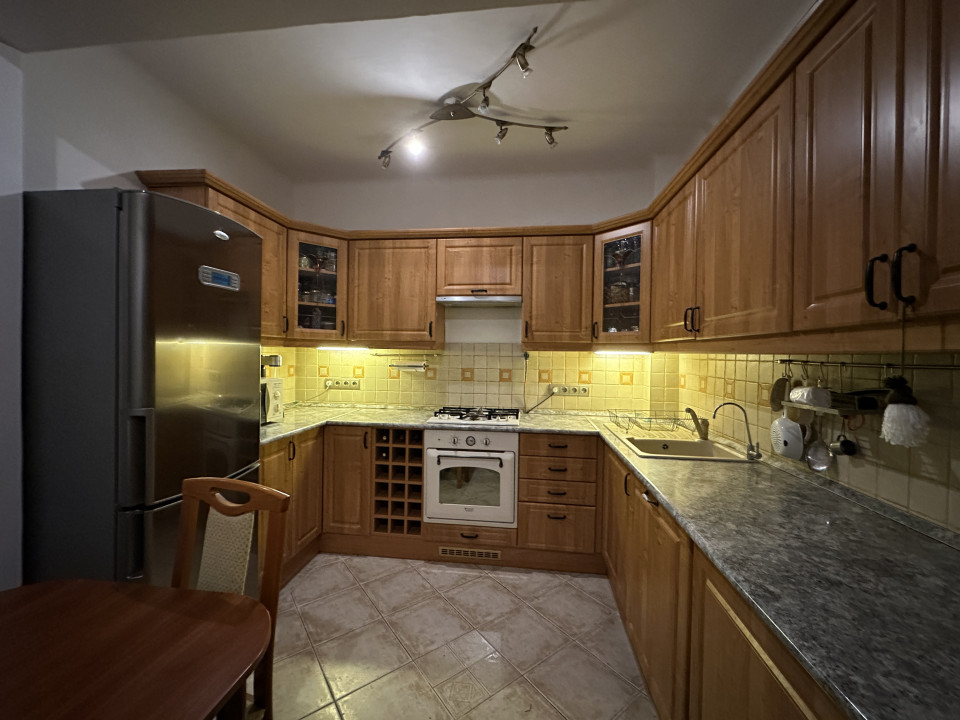 A külön wc és külön fürdő kényelmes mindennapokat biztosít, a kb. 15 m²-es konyha beépített, modern gépekkel felszerelt: Ariston gáz sütő és hozzá tartozó gáz főzőlap, páraelszívó, hűtő, mosógép és mosogatógép is rendelkezésre áll, ami azonnali komfortot ad a beköltözéskor. A lakás 2010-ben teljes körűen át lett vezetékelve, beleértve az elektromos hálózatot, a vízvezetékeket és a fűtést is, így műszakilag rendezett állapotban van.