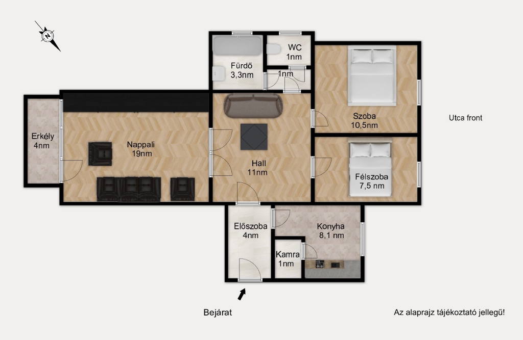 A modern, jól átgondolt elrendezés élhető tereket biztosít, miközben a fenntartási költségek kedvezőek maradnak.