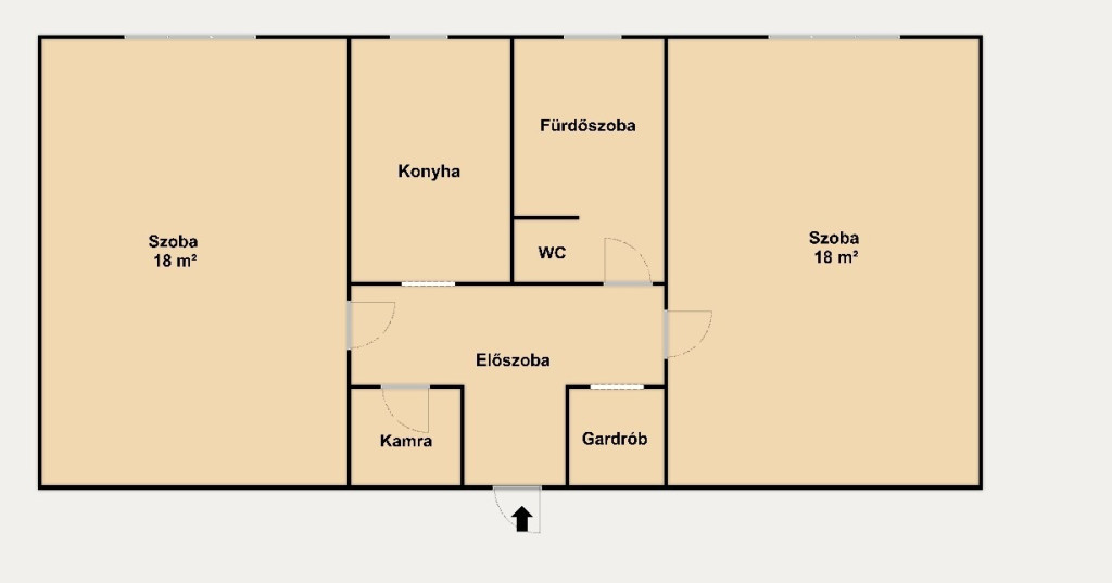 Az ingatlan kiváló elosztású: két külön nyíló, tágas, egyenként 18 m²-es szoba biztosít kényelmes életteret. A központi elhelyezkedésű előszobából nyílik a konyha, a fürdőszoba és a külön helyiségben található WC, ami praktikus megoldást jelent a mindennapokban. A lakáshoz kamra és gardrób is tartozik, így a tárolás könnyen megoldható.