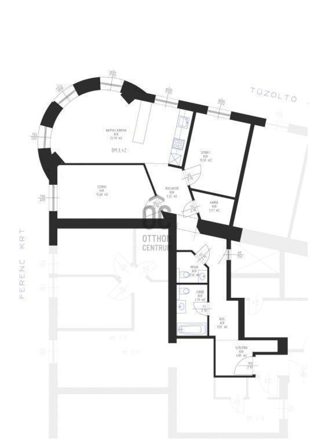 Budapest IX. kerületében, a Ferenc körút egyik legszebb, liftes, 1893-ban épült historizáló bérházának 4. emeletén eladó egy 83 m²-es, teljes körűen felújított lakás. Az utcai nézetű ingatlan 2 hálószobát, amerikai konyhás nappalit, fürdőt és külön mosdót kínál, 330 cm-es belmagassággal és világos terekkel.