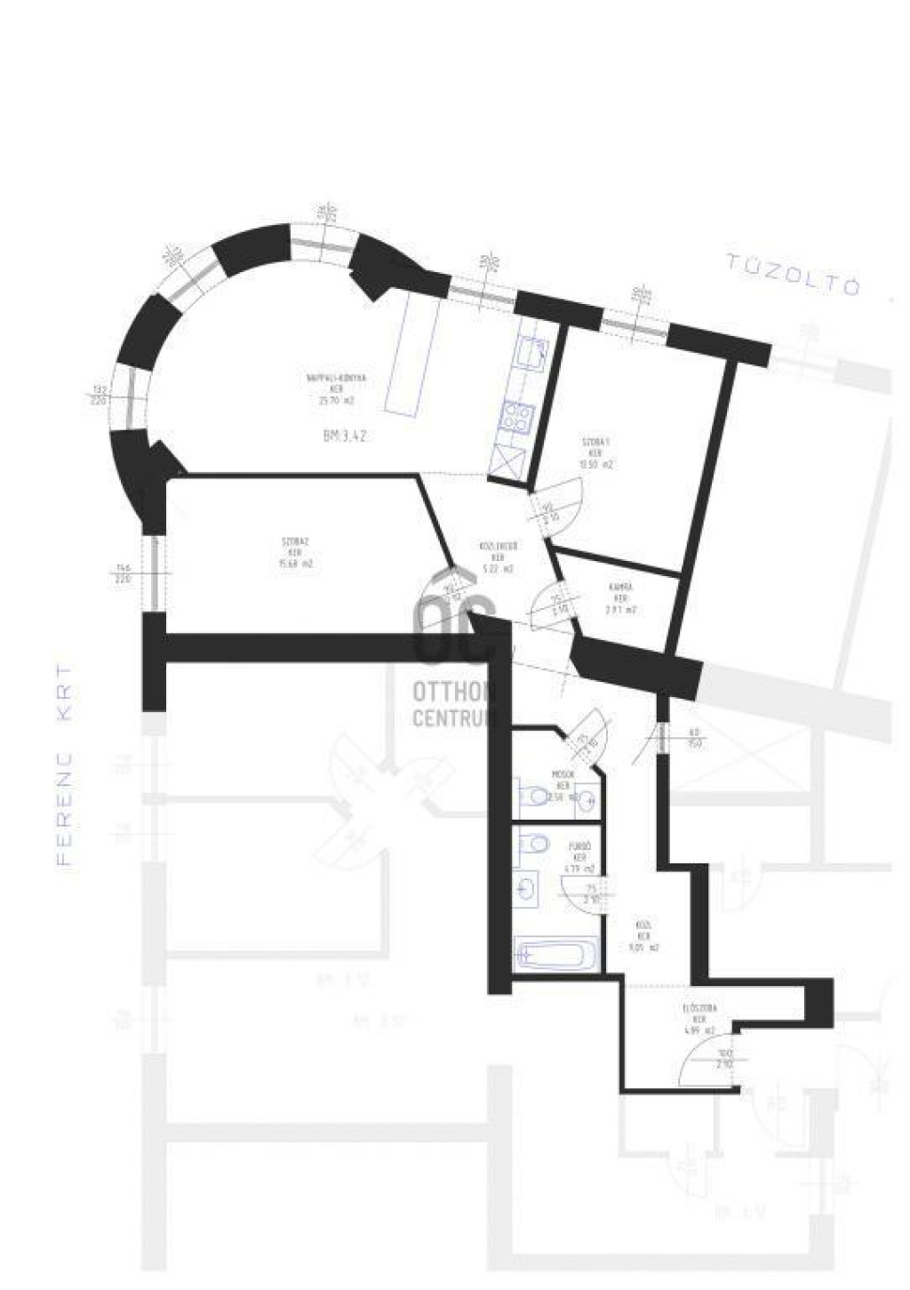 Budapest IX. kerületében, a Ferenc körút egyik legszebb, liftes, 1893-ban épült ház 4. emeletén eladó egy 155 m²-es, utcai nézetű, saroklakás, amely két különálló, de könnyen egybenyitható lakásból áll. A lakás 4 hálószobát, 2 amerikai konyhás nappalit, valamint több fürdőt és mellékhelyiséget foglal magában, ideális nagycsaládoknak, kétgenerációs otthonnak vagy prémium befektetésnek.