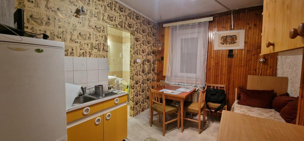- 1 nagy szoba, ebédlő, konyha, főzőfülke, fürdőszoba, wc, közlekedő.