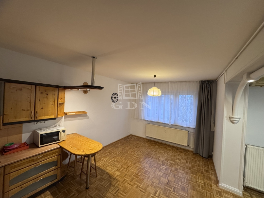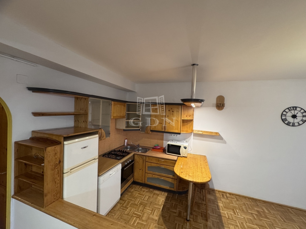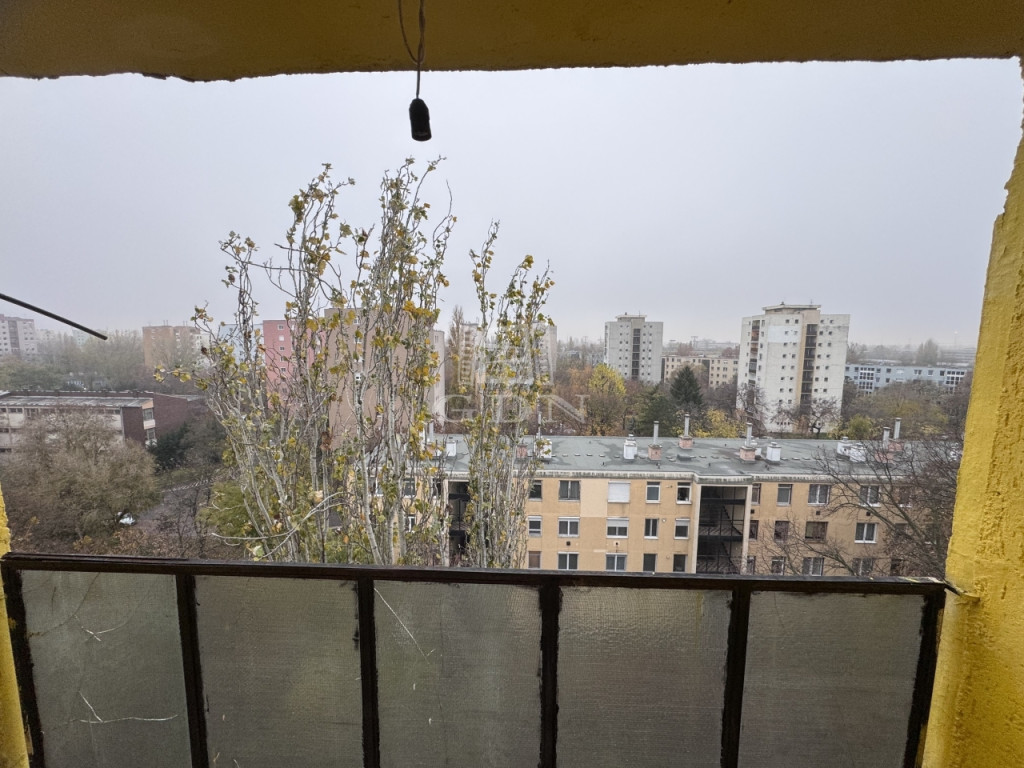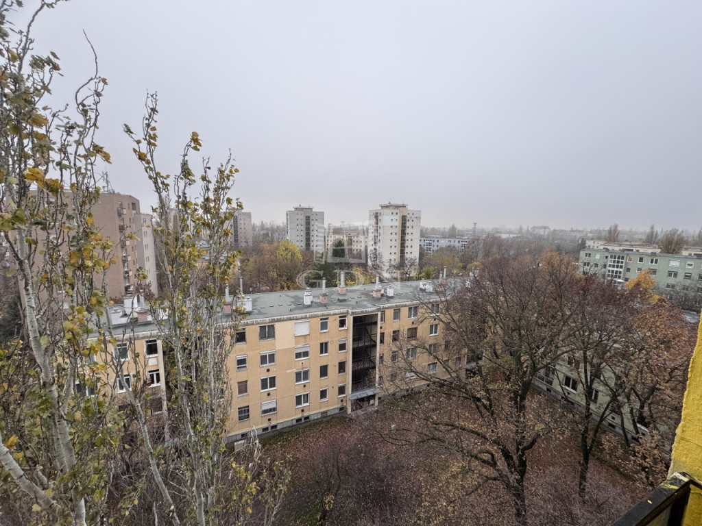 A lakás hetedik emeleti nyugalma felülről mutatja meg a város egyik legszebb arcát: fás, barátságos házak, a távolban a budai dombok – egy olyan panoráma, amitől minden nap jobb kedvvel indulsz el otthonról.
