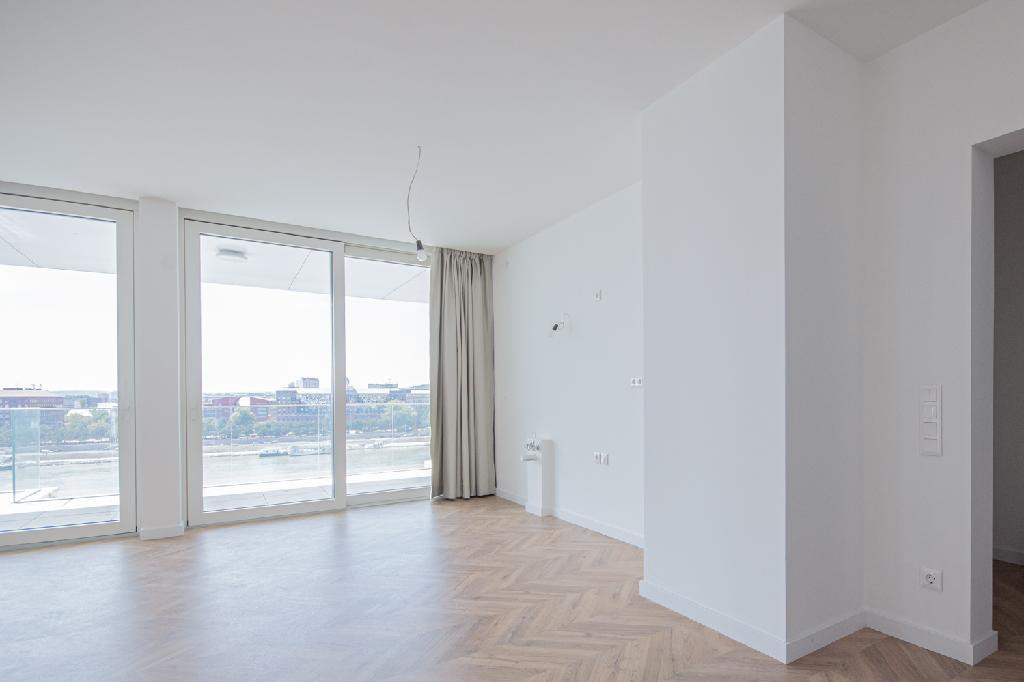 Ez a világos, modern penthouse lakás nem csupán egy otthon, hanem egy életérzés: a város nyüzsgését és a vízpart nyugalmát egyszerre élvezheti.