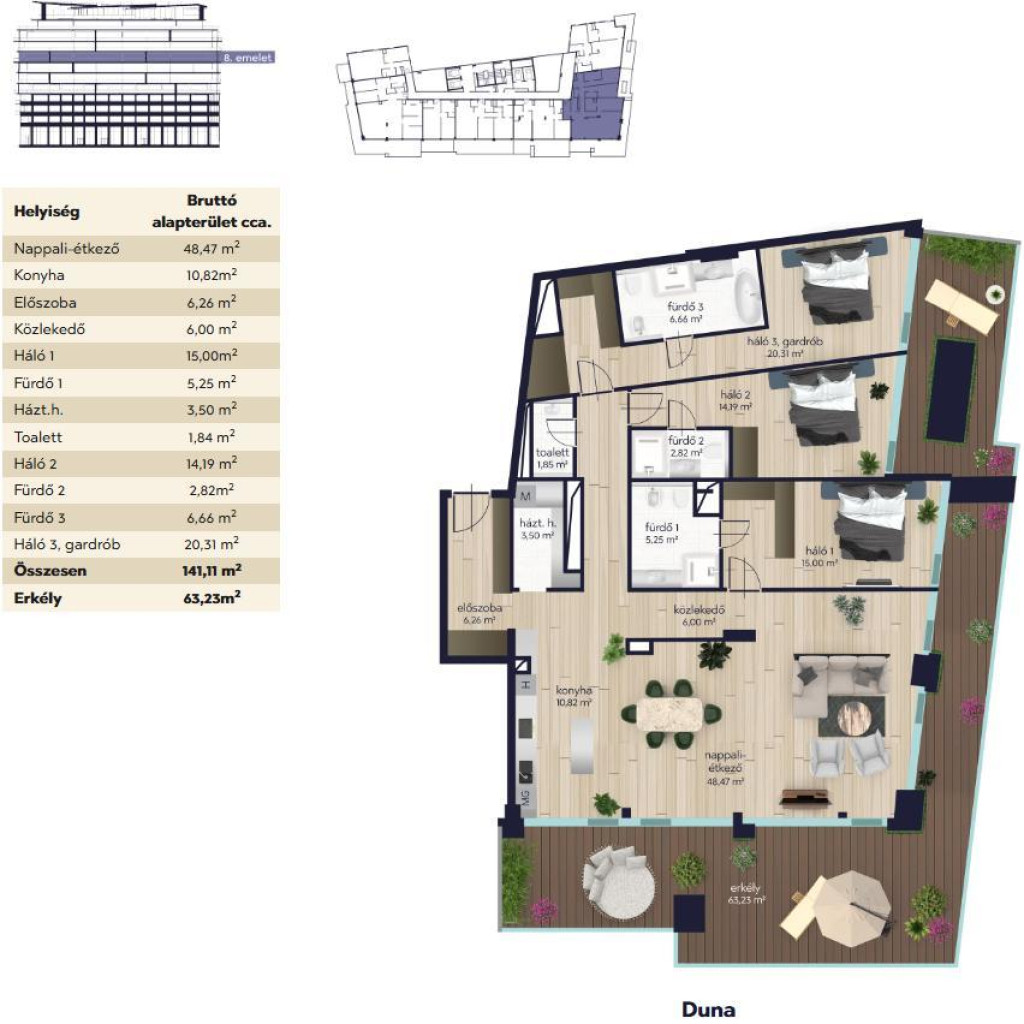 Budapest egyik legexkluzívabb fejlesztésében, a IX. kerület szívében, a Millenniumi városközpontban közvetlen a Duna-parton kínálok eladásra egy 8. emeleti, 139 nm-es, nappali + 3 hálószobás, fényárban úszó luxuslakást, hatalmas, 63 nm-es privát terasszal, valamint egy 10. emeleti, 134 nm-es, nappali + 3 hálószobás, fényárban úszó luxuslakást, hatalmas, 66 nm-es privát terasszal.