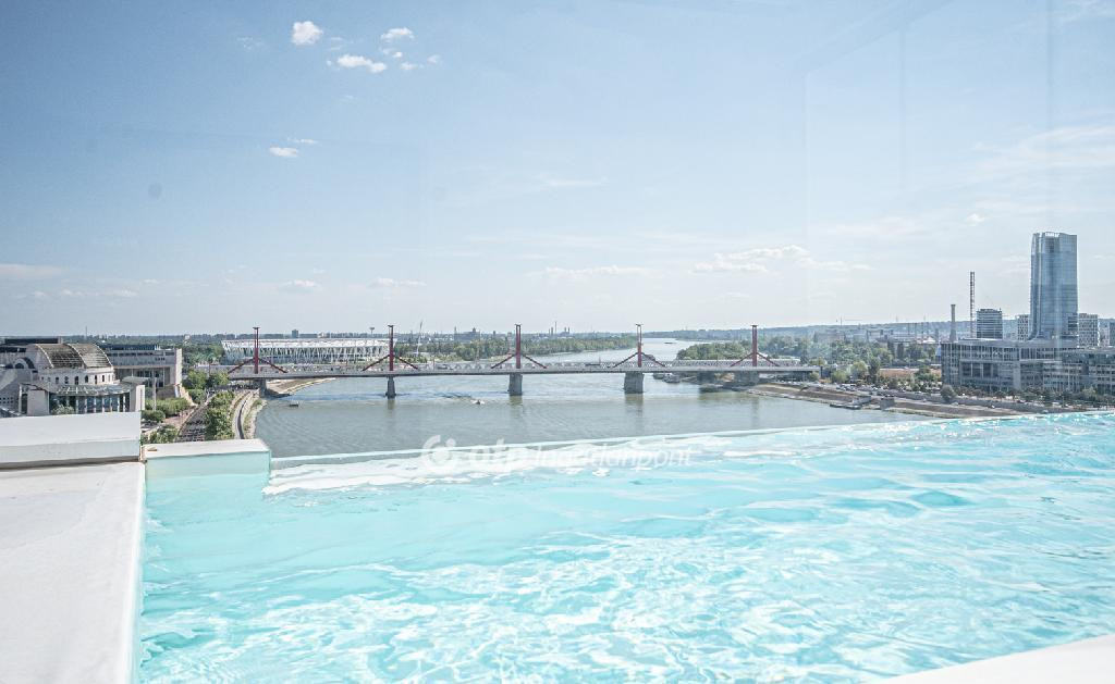 A belváros szívében, a Duna partján, exkluzív társasházban eladó egy 8. emeleti, 134 m2-es, nappali + 3 hálószobás, 3 fürdőszobás luxuslakás hatalmas, 66 m2-es, szeparált terasszal, amelyről örök panoráma nyílik Budapestre és a Dunára.
