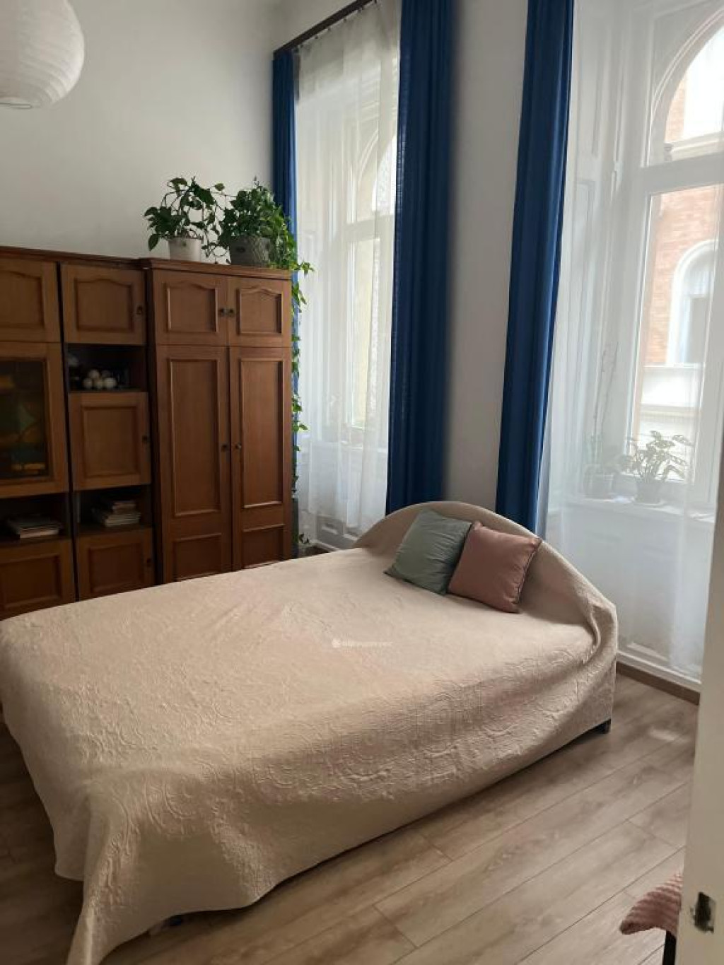 A lakás 3 szobás, tágas, világos, első emeleten elhelyezkedő és egy csendes kis utcára valamint a belső udvarra néz, nincs zajterhelése.