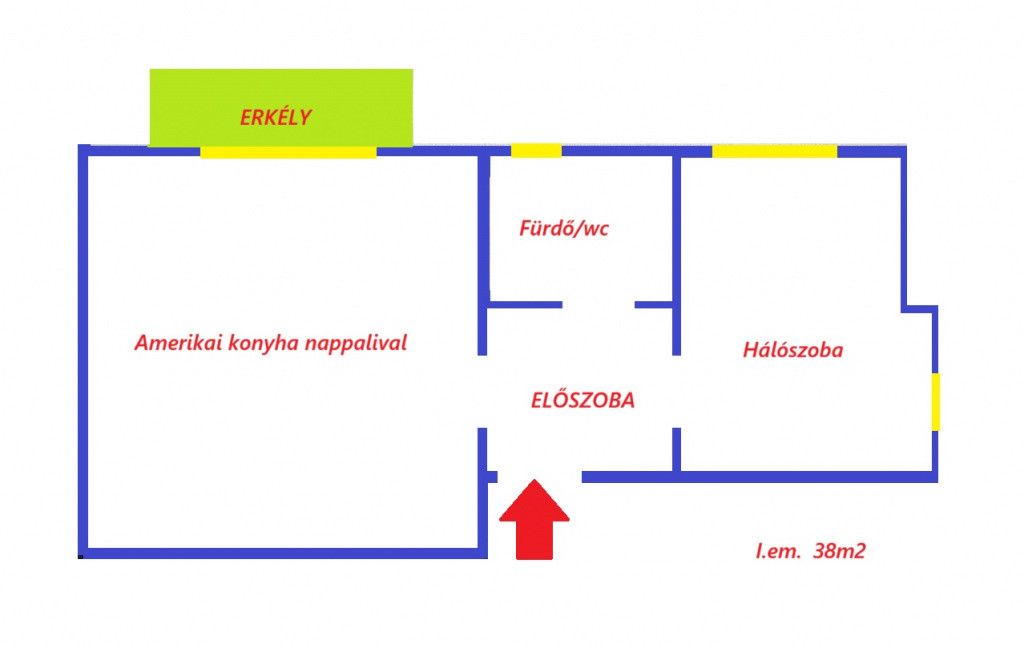 -36m² lakótér + 2 m² erkély