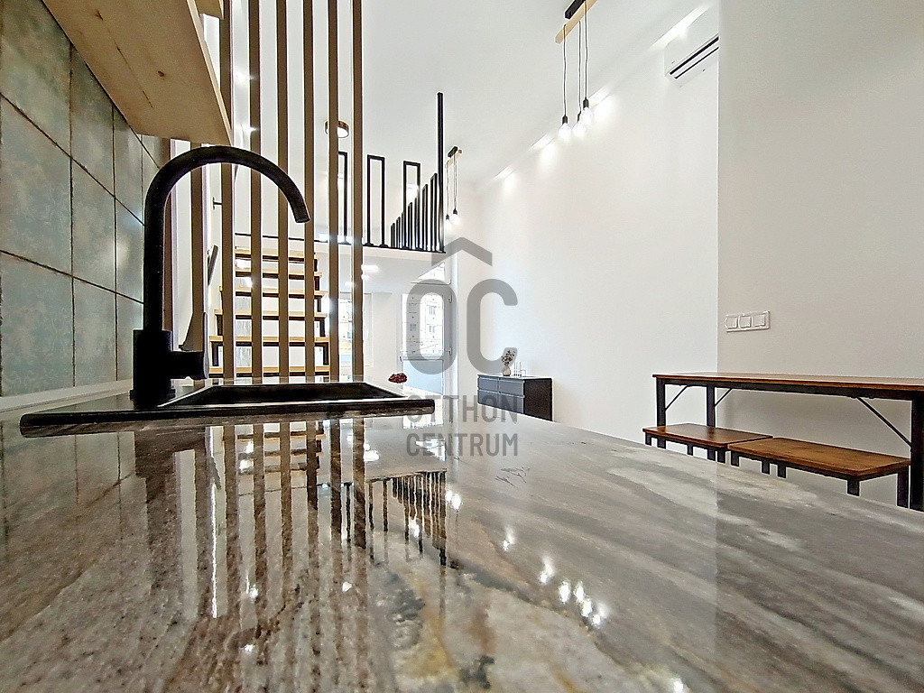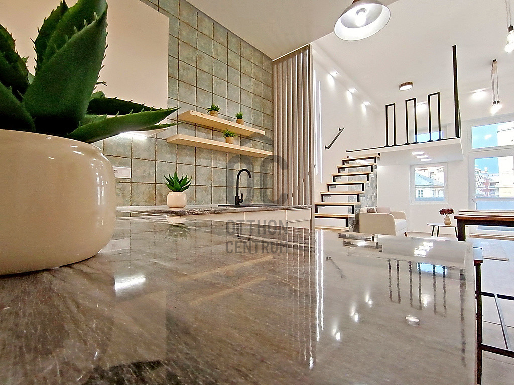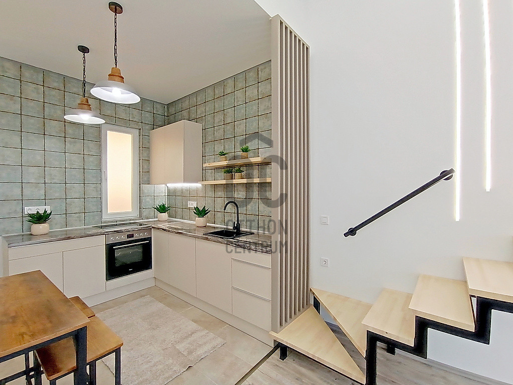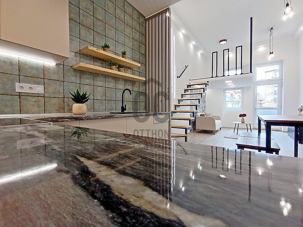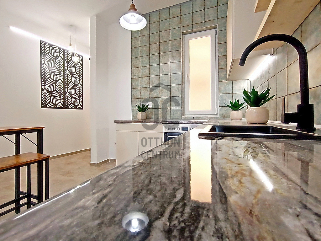 …és amit kínálok hozzá az pedig nem más, mint egy most a napokban elkészült, esztétikailag és műszakilag is minden apró részletében a legmagasabb minőségű anyagokkal, extra kivitelezéssel, luxus színvonalon történő felújítással és lakberendezéssel teljes körűen újjávarázsolt / újjáépített, összesen 35 m2 alapterületén egy hatalmas méretű (kb.25 m2-es) - délkeleti fekvésének és az óriási üvegfelületű ablakainak hála, közvetlen napsütötte / rendkívül világos - amerikai konyhás étkezős nappalival - a 3,8 méteres belmagasságnak köszönhetően pedig még egy hálórésznek vagy akár dolgozónak is kiválóan használható 5 m2-es galériával - és ezen kívül természetesen egy minden igényt kielégítő fürdőszobával is büszkélkedő garzonlakás a IX. kerületi, Mester utcának - a Haller parkhoz közel eső - rehabilitációs részén. A szóban forgó ingatlant eredetileg egy nagyobb alapterületű (egy társasházi albetéten lévő) lakásból „egy újonnan kialakuló 3 lakásos projekt részeként” a másik kettő (szintén teljes körűen felújított) lakással egyetemben, hivatalos ügyvédi ingatlan használati megosztással alakították ki. Ez a lakás a 2. számú lakással együtt egy „közös előtérből” - de természetesen egy teljesen különálló „további” bejárati ajtón keresztül - közelíthető meg, ezzel is teljesen privát szférát biztosítva az új tulajdonosa számára! Ehhez a lakáshoz tartozik még - az ingatlan használati megosztási szerződés szerint - saját tulajdonként (és természetesen kizárólagos használatként is), a 3 m2 alapterületű, kellemes „városi és zöldre néző” panorámával büszkélkedő erkély is !!!