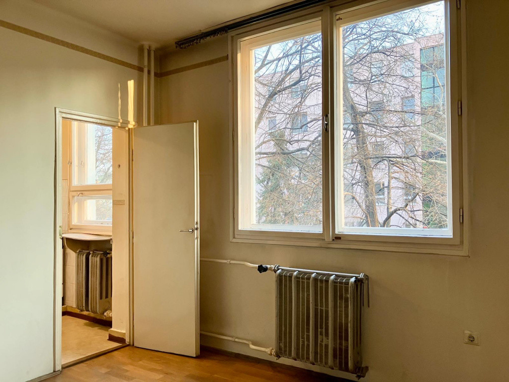 A 18 nm-es szoba és a konyha ablaka csendes parkra néz.