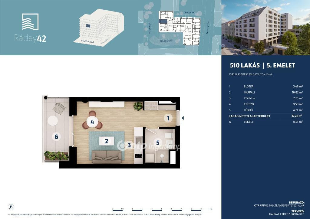 Budapest IX. kerületében, a Ráday utca 42. szám alatt kínálunk eladásra egy 1 szobás, 27,26 nm-es, 8,37 nm terasszal rendelkező lakást, amely egy különleges fejlesztés része. Az épület egy meglévő struktúra újragondolásával, magas műszaki tartalommal és környezettudatos megoldásokkal születik újjá.