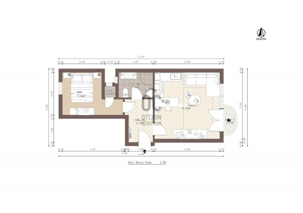 300 cm belmagasság, könnyen 2 szobássá alakítható, erkélyes, tehermentes.