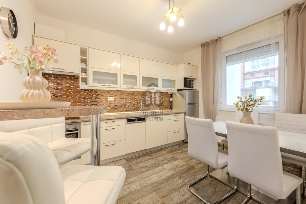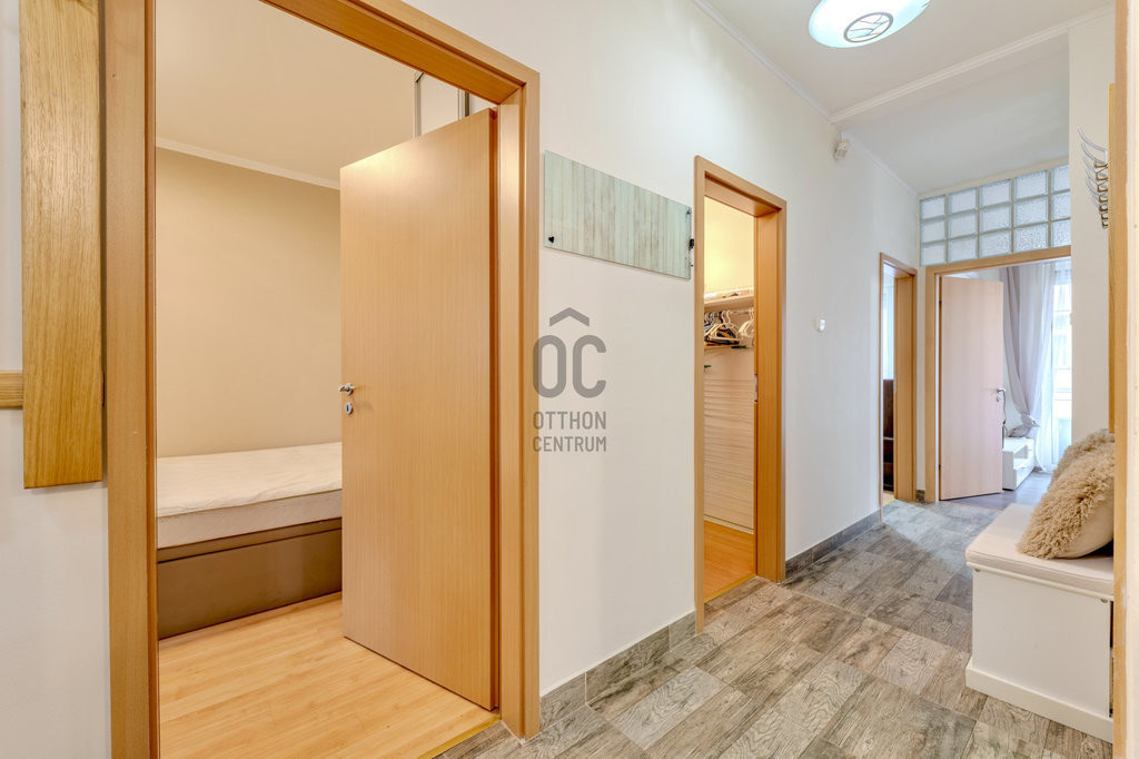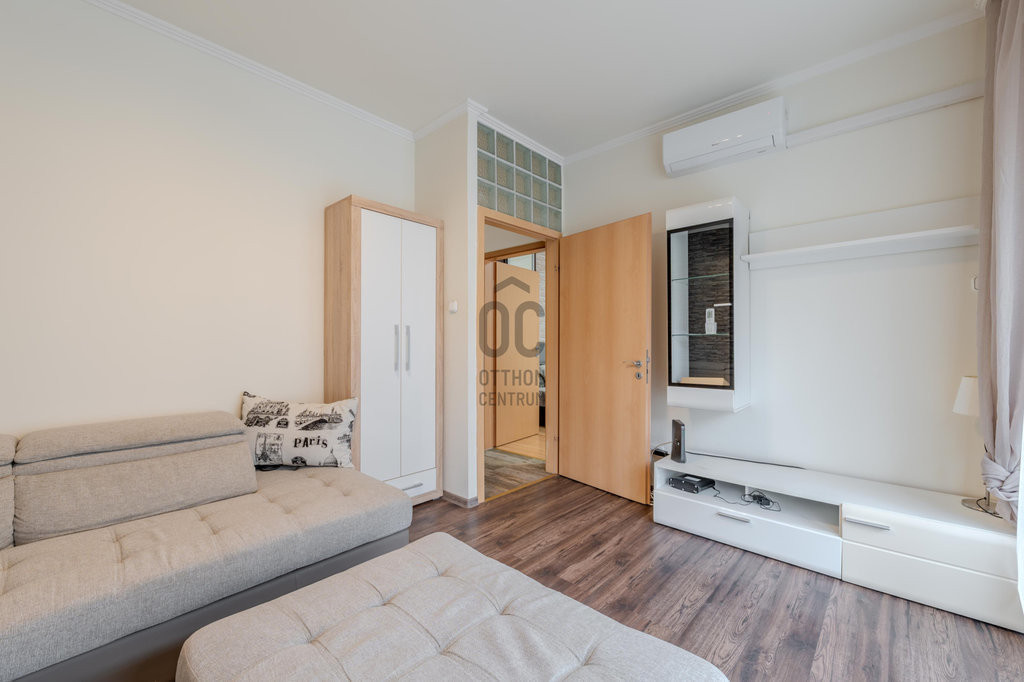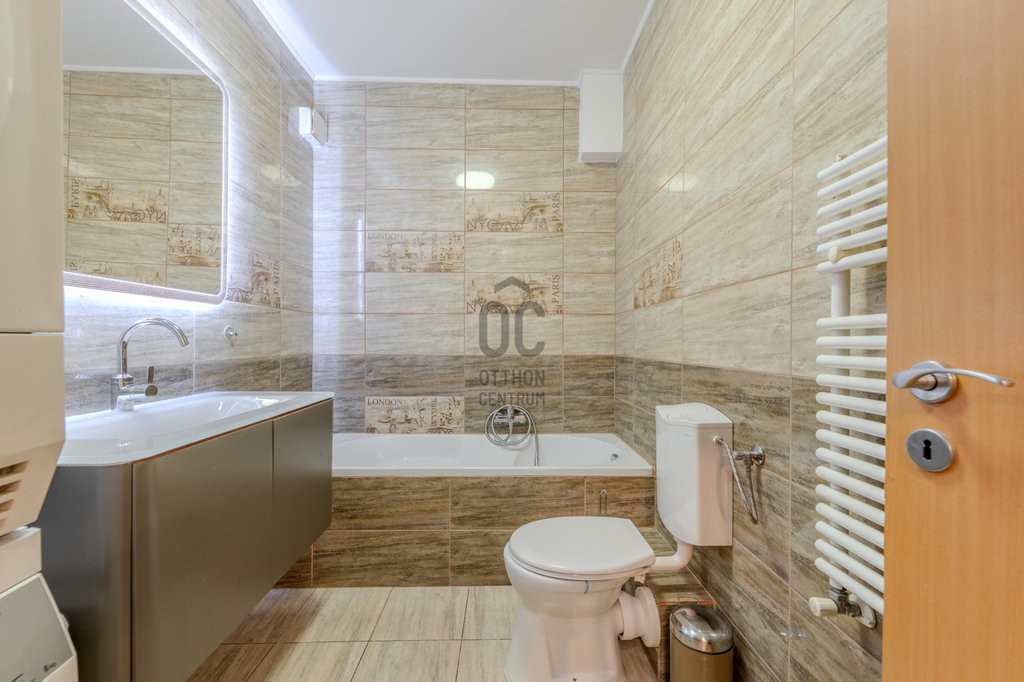 Modern kényelem: Beépített bútorok, tágas gardróbszekrények, klíma és házközponti fűtés garantálja a gondtalan mindennapokat.