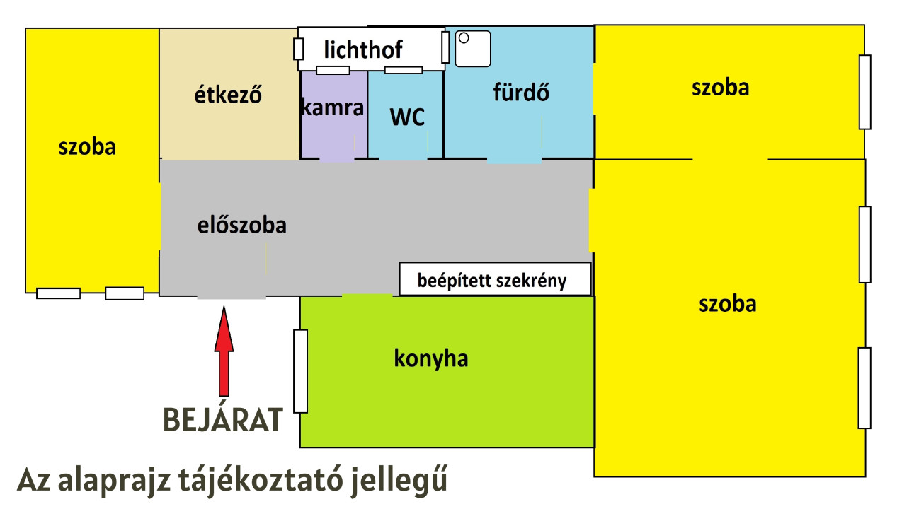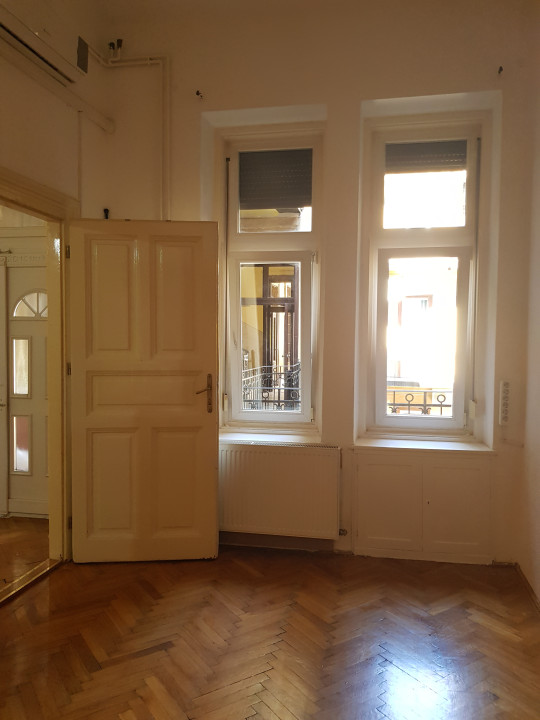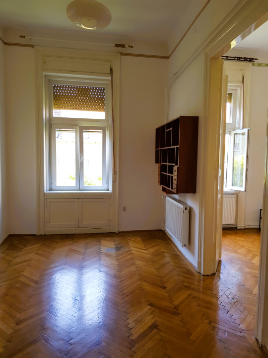 A két egymásból nyíló szoba utcára néző, a belső a fürdőszobán keresztül is átjárható.
