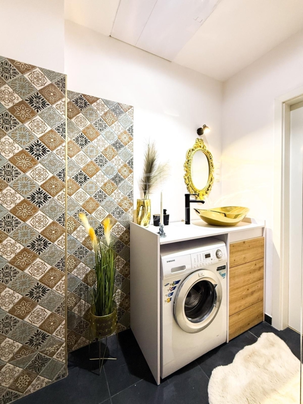 A lakás 1 hálószobás, fürdője és WC-je egy helyiségben található, a belső terek modern, ízléses kialakításúak.