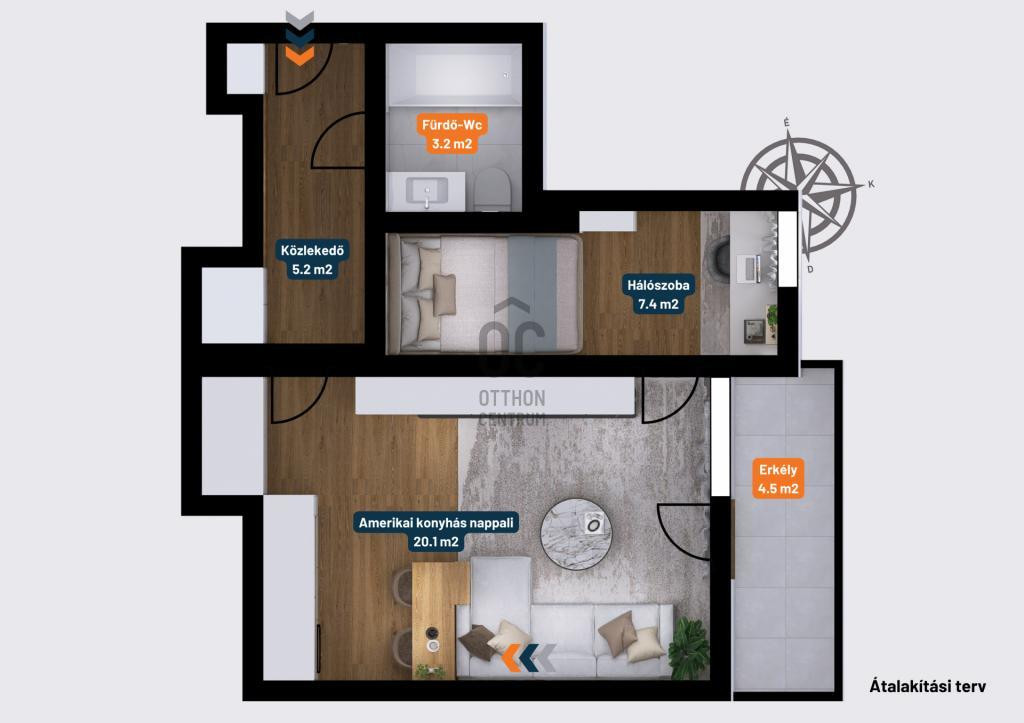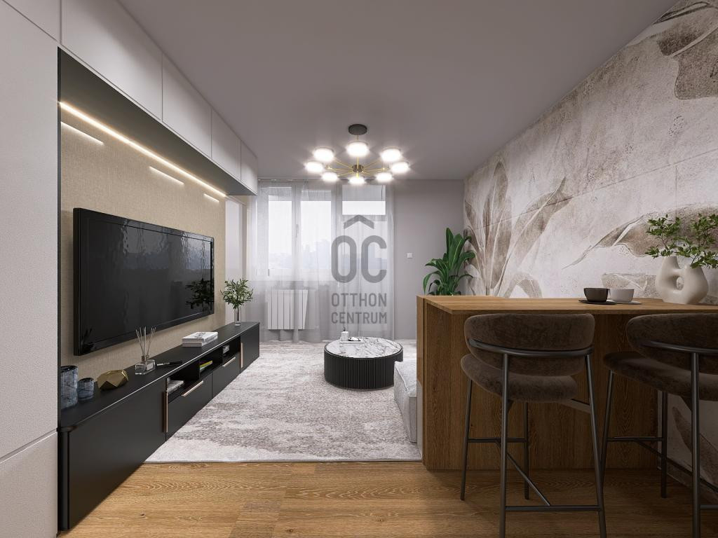 A képek között található fotórealisztikus látványtervek megmutatják, hogyan képzelhető el a lakás korszerű, modern felújítás után.