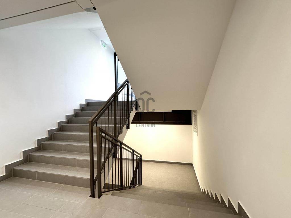 - Homlokzata és lépcsőháza modern, letisztult vonalvezetésű.
