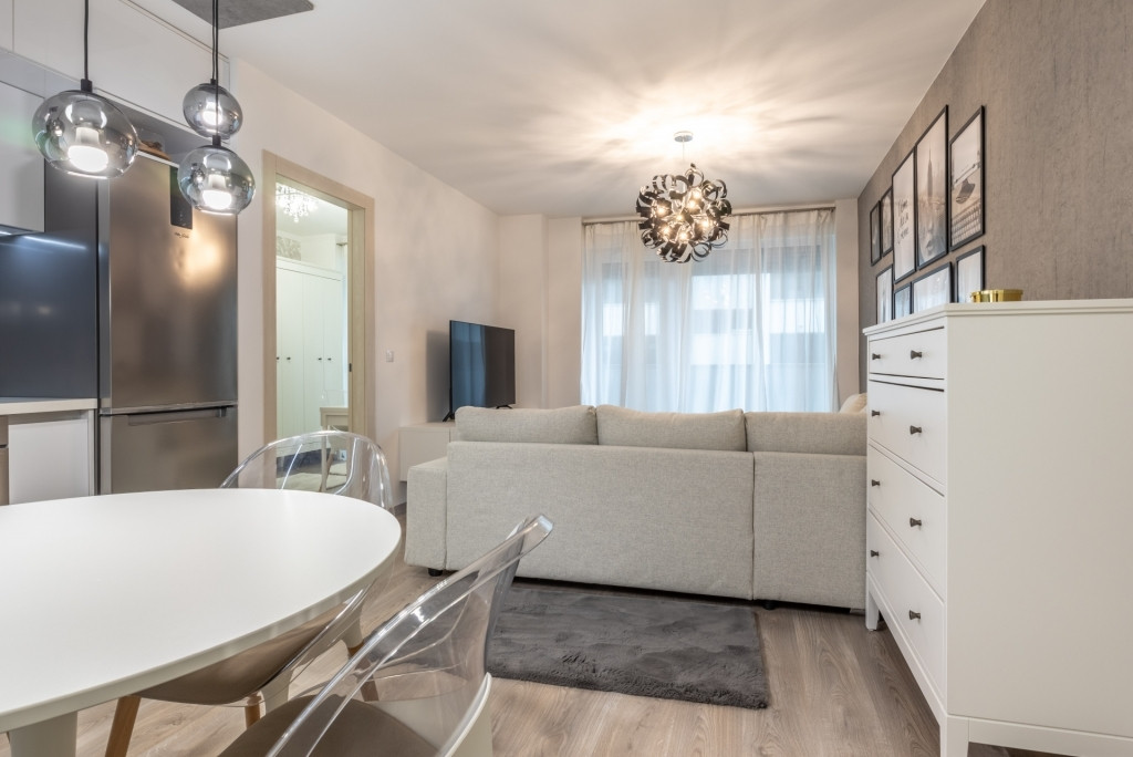 A IX. kerületben, Ferencvárosban, a Duna-part közelében épült Allure Residence Budapest lakóparkban keresi új tulajdonosát egy amerikai konyhás nappali + 2 szobás, 58 m2-es, nagy erkélyes lakás teljes bútorzattal.