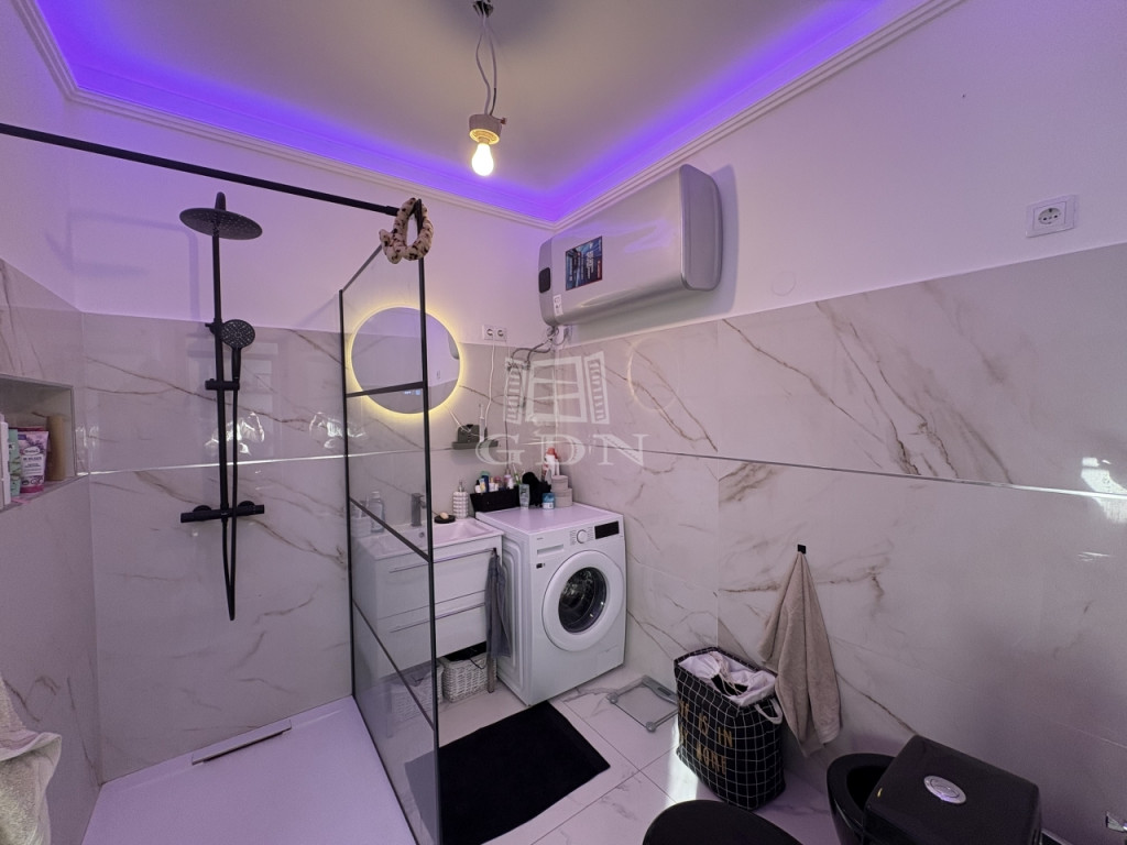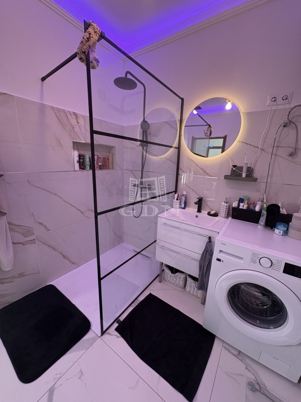 A lakás teljeskörű felújításon esett át: megújultak a villany- és vízvezetékek, modern burkolatok, vadonatúj bútorok és gépek kerültek beépítésre. A ház rendezett, lifttel rendelkezik, a lakás pedig csendes és napfényes.