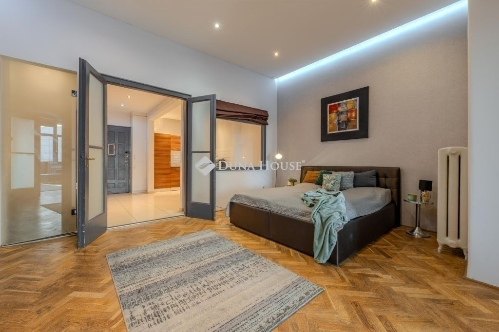 A lakás hivatalosan 1 szobás, jelenleg azonban két egybenyíló szobával rendelkezik, amely élhetőbb, jól használható térérzetet biztosít. A világos, arányos helyiségek lehetővé teszik modern belvárosi lakásként vagy reprezentatív irodaként történő hasznosítását is.